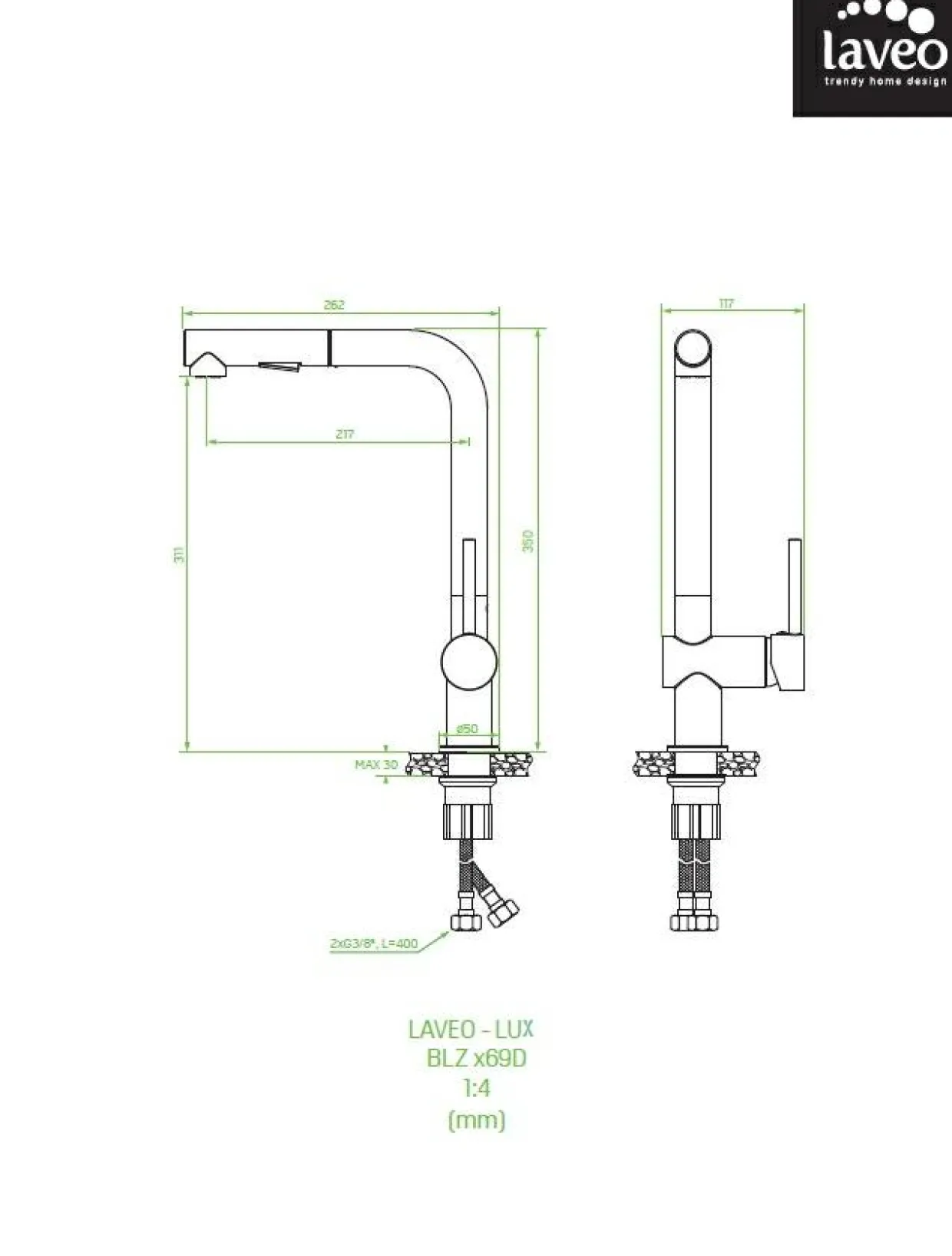 LAVEO LUX to stylowa bateria kuchenna, która łączy nowoczesny design z praktycznymi rozwiązaniami. Beżowe wykończenie nadaje ciepła i elegancji, doskonale wpisując się w klasyczne i współczesne aranżacje kuchni.