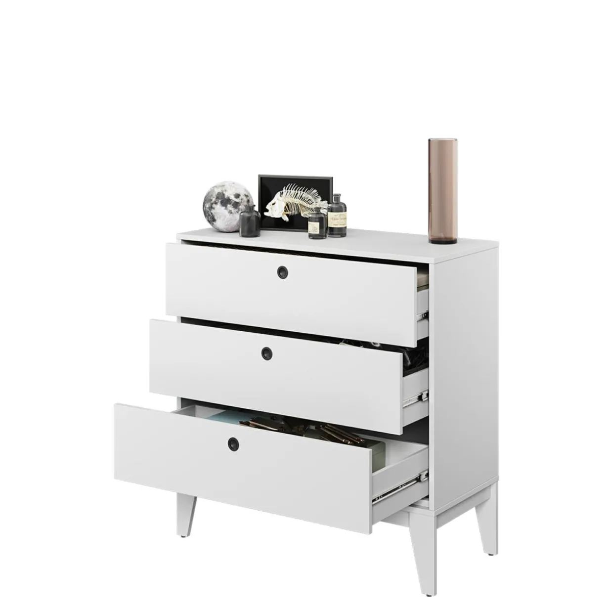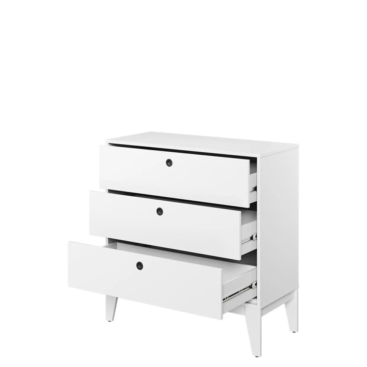 - Komoda FEMII wyposażona jest w 3 szuflady, w których możesz przechowywać rzeczy o wadze nieprzekraczającej 3 kg.