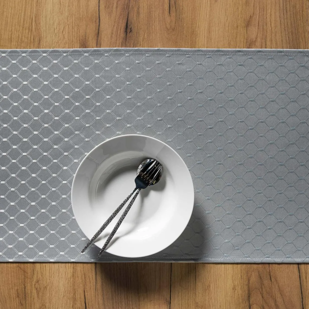 Wprowadź drobny akcent, który zgrabnie wpisze się w harmonijną aranżację – bieżnik na stół KLARA z geometrycznym wzorem podkreśli uporządkowany wystrój i uatrakcyjni wnętrze.