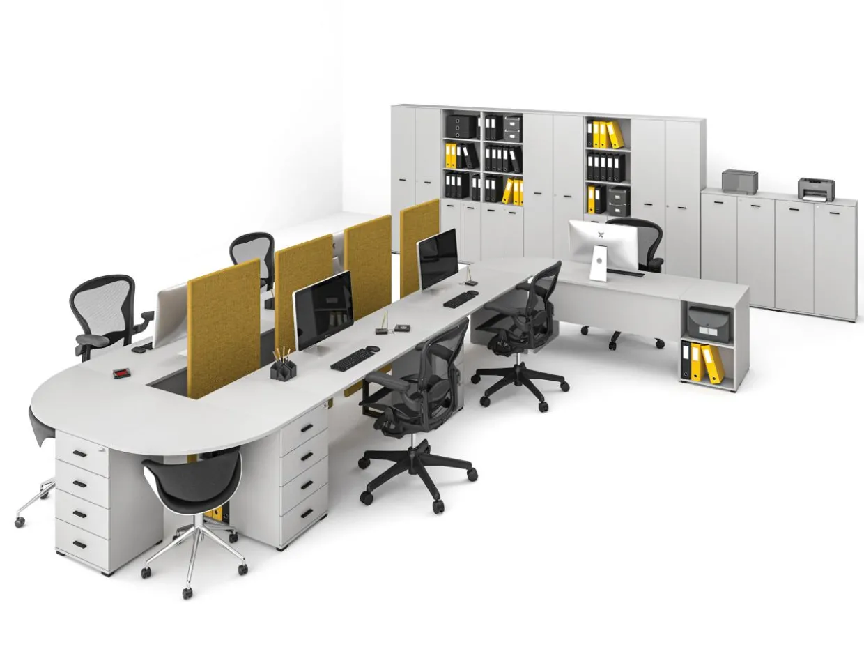 - Dostawki w formie szafek i blatów biurek dopełnią meble, tworząc nowoczesne miejsce pracy.