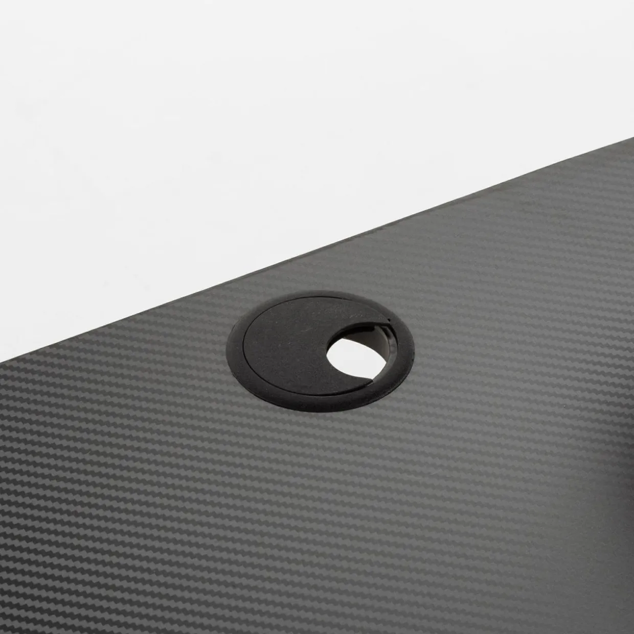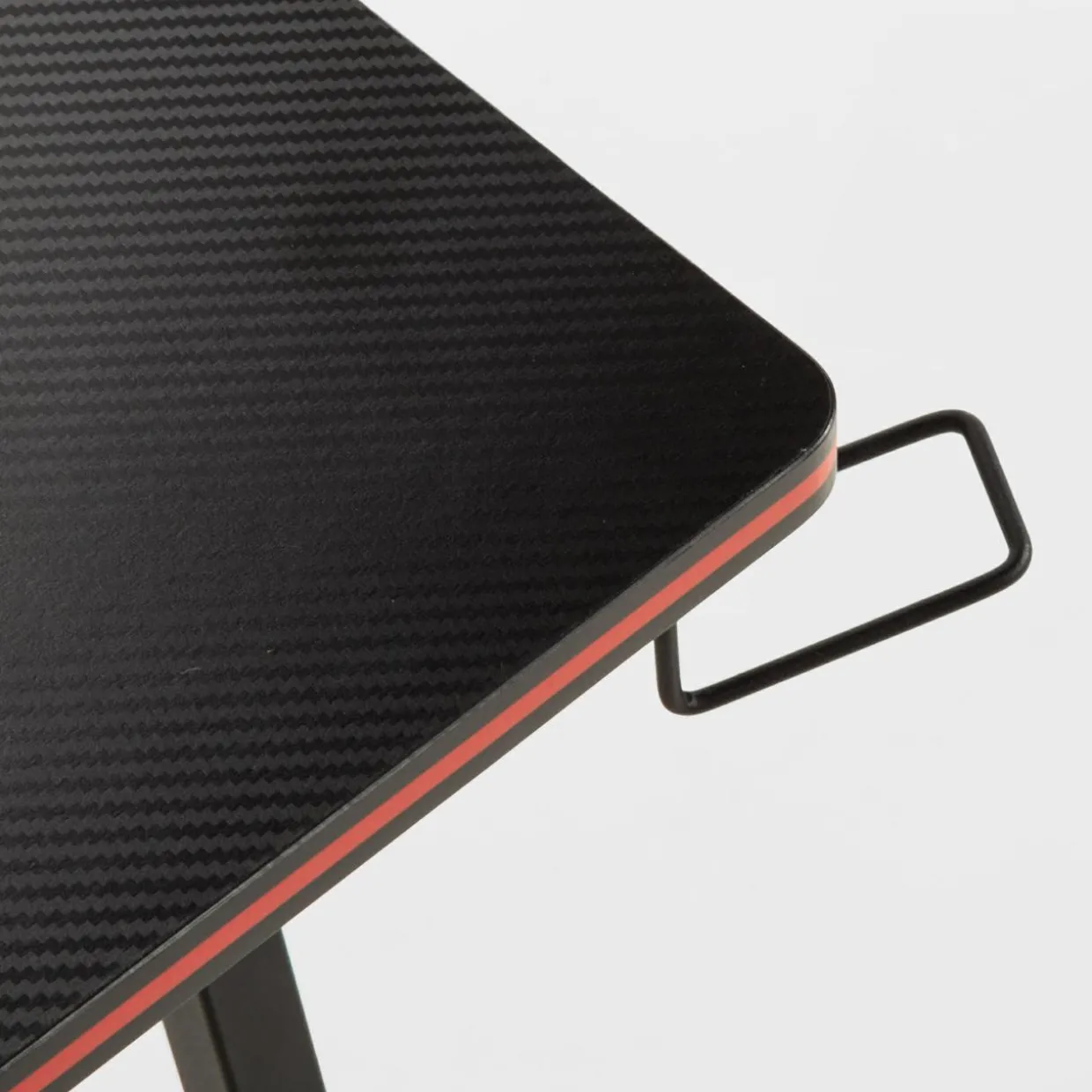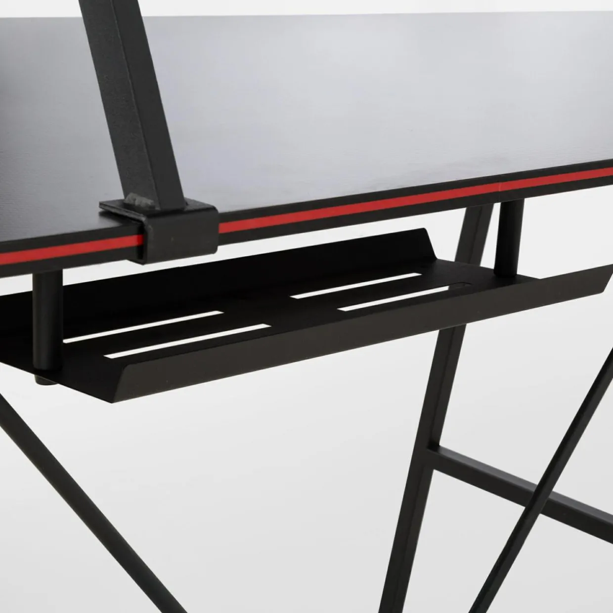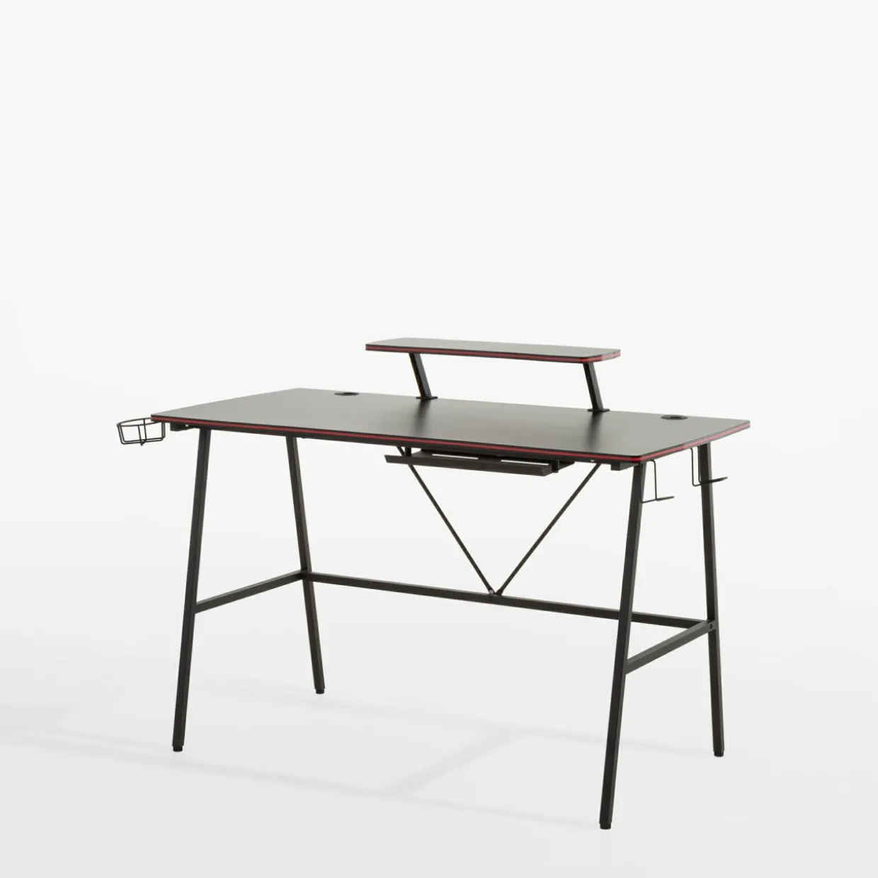 Biurko LINT zostało wykończone w czarnym kolorze z czerwonymi akcentami. Wyraźne linie na brzegu blatu i nadstawki wyglądają nowocześnie.