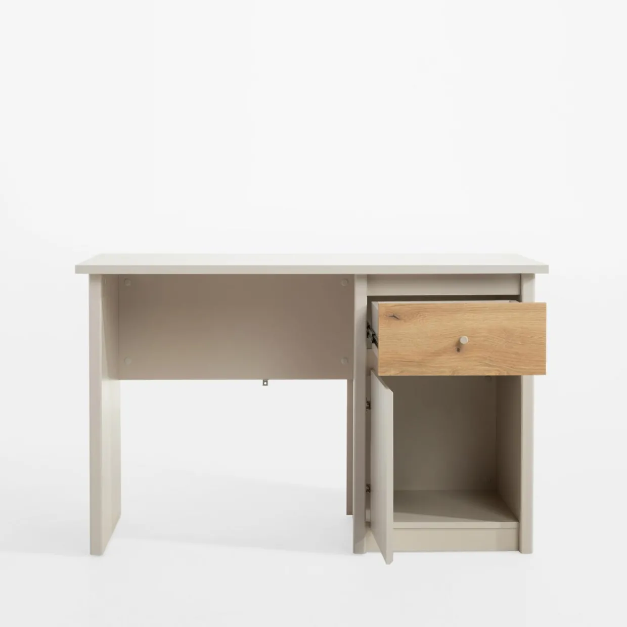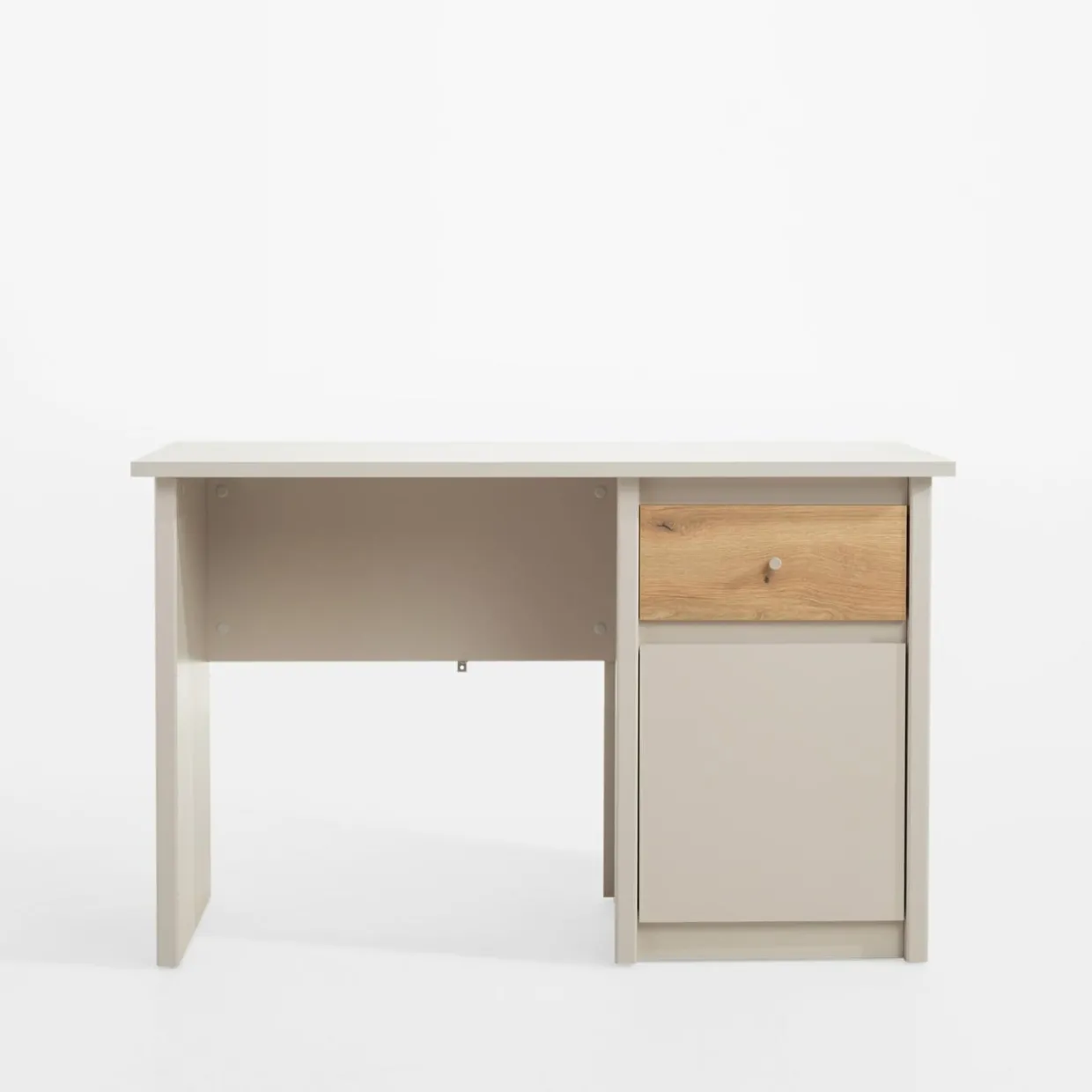 Biurko KARIN dzięki niewielkim rozmiarom (120 cm szerokości), świetnie sprawdzi się do codziennej nauki lub pracy nawet w niewielkim pomieszczeniu. Na blacie znajdzie się miejsce na laptop, odpowiednie oświetlenie i notatnik.