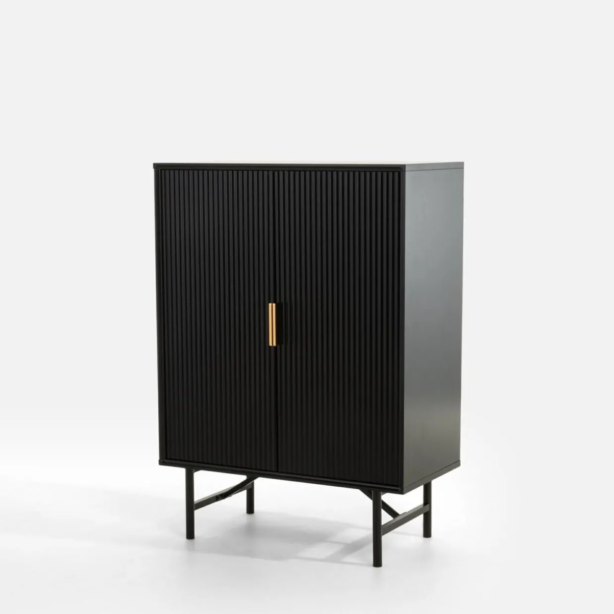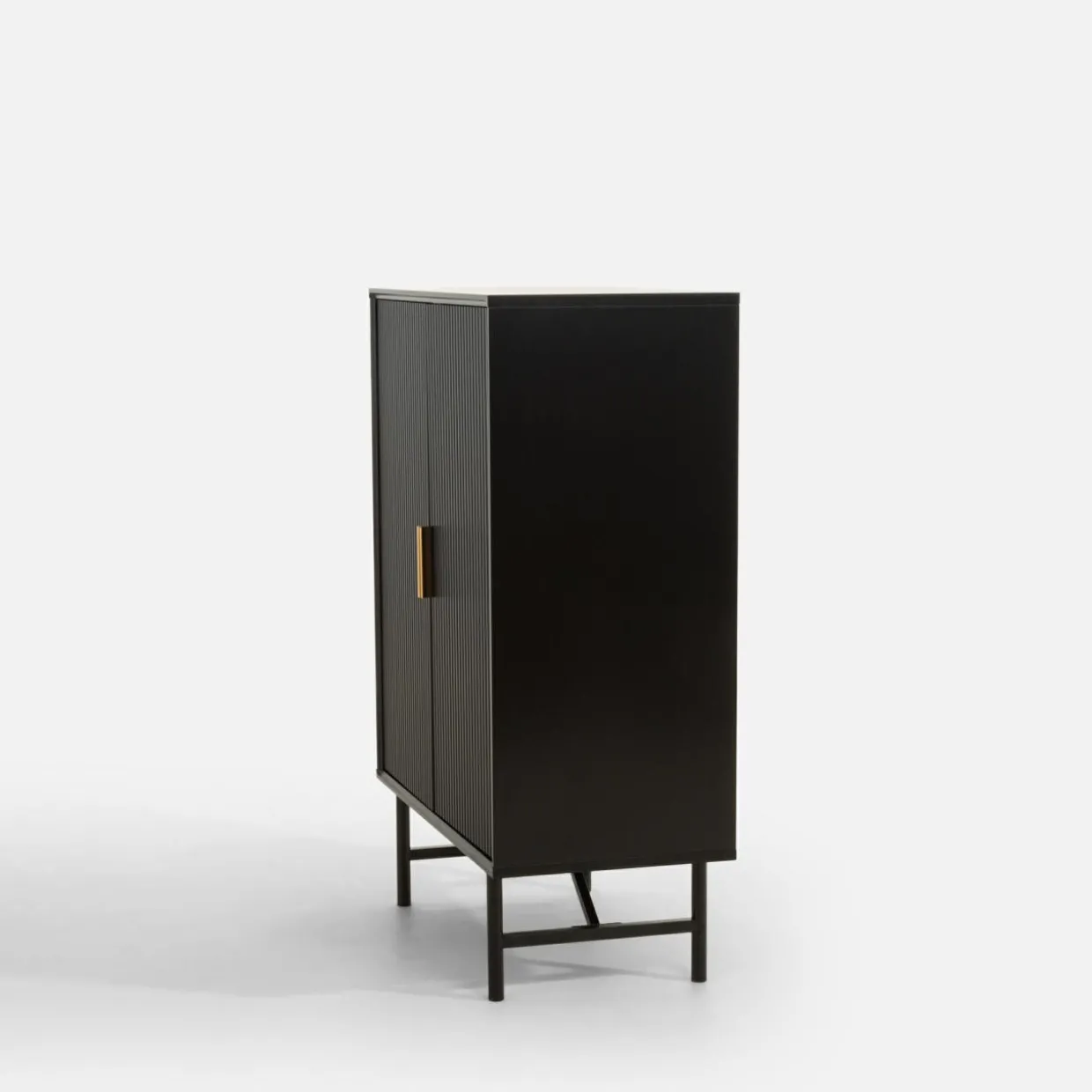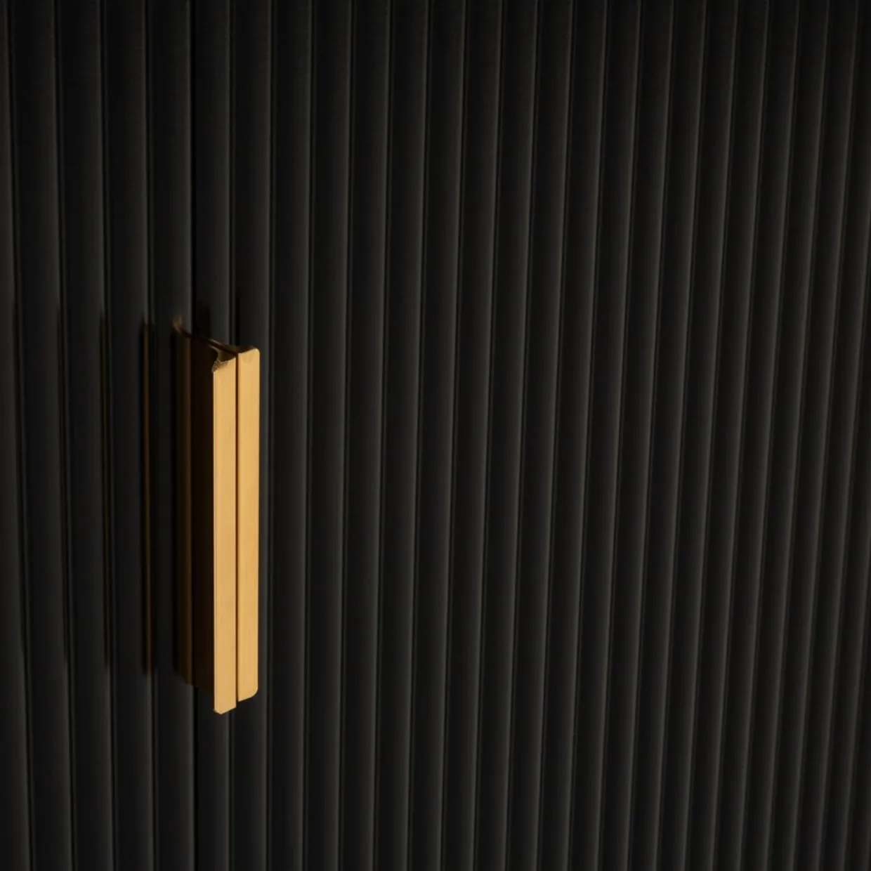 Kolekcja mebli SEVI to połączenie głębokiej czerni i złotych akcentów, które nada wnętrzu luksusowego charakteru. Proste bryły wykończone w półmacie stworzą elegancki i spójny wystrój salonu.