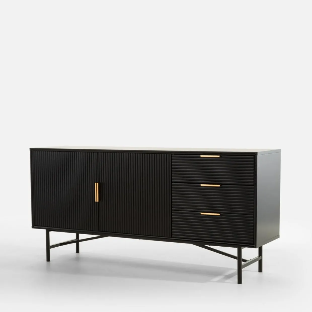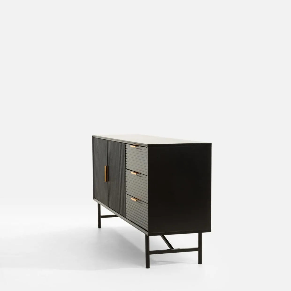 Kolekcja mebli SEVI to połączenie głębokiej czerni i złotych akcentów, które nadadzą wnętrzu luksusowego charakteru. Proste bryły wykończone w półmacie stworzą elegancki i spójny wystrój salonu.