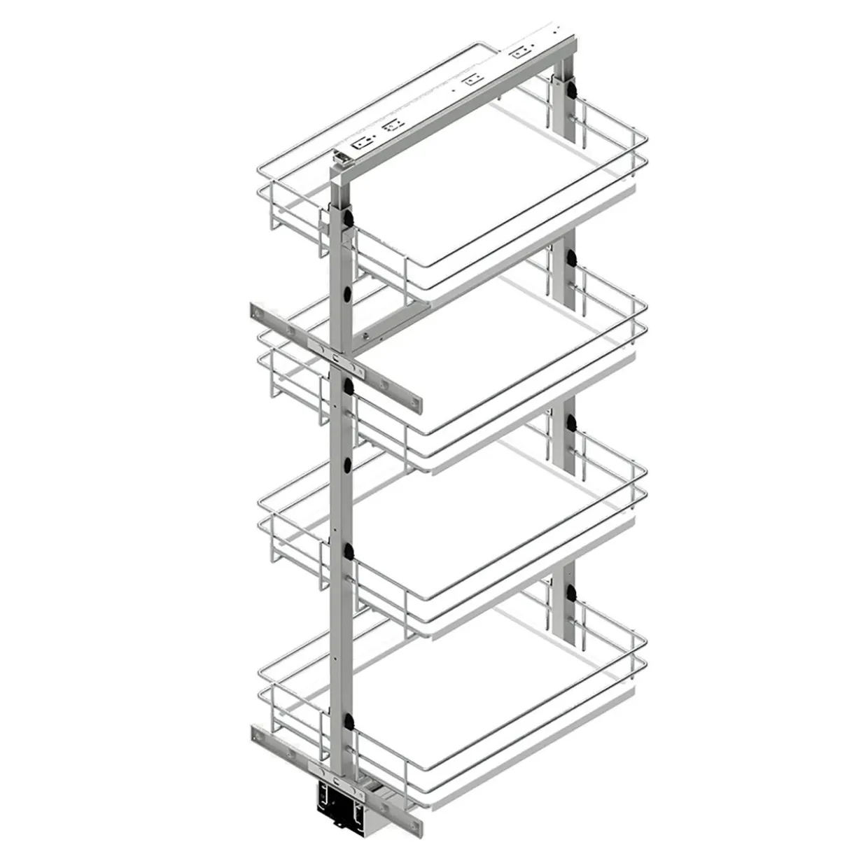 INSIDE CARGO to system wysuwanych na zewnątrz 4 półek, na których można umieścić produkty żywnościowe, narzędzia kuchenne lub naczynia. Wysokość ich zawieszenia można regulować za pomocą zaczepów.