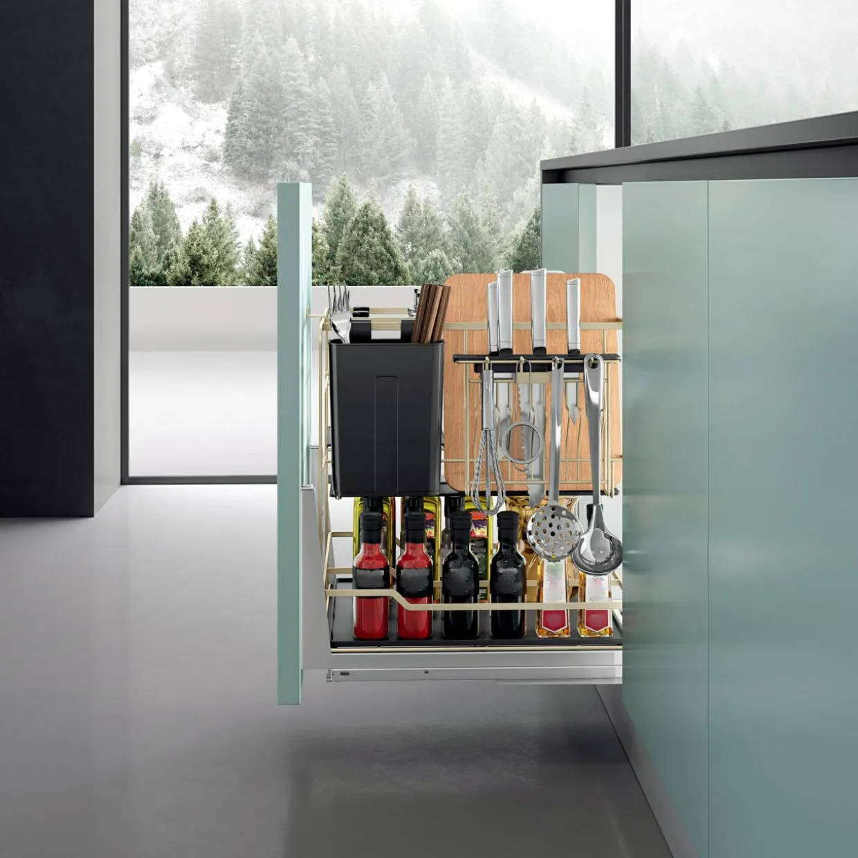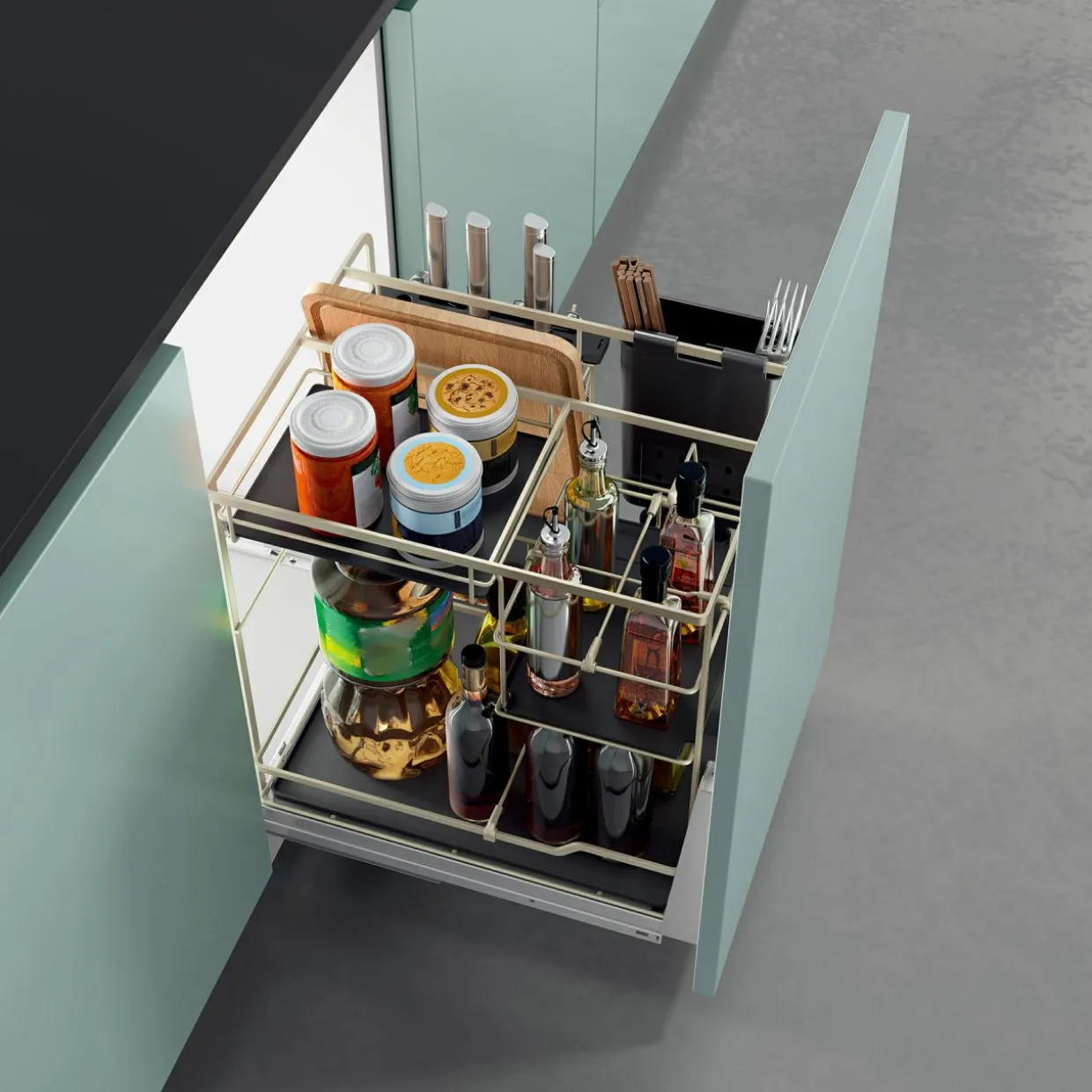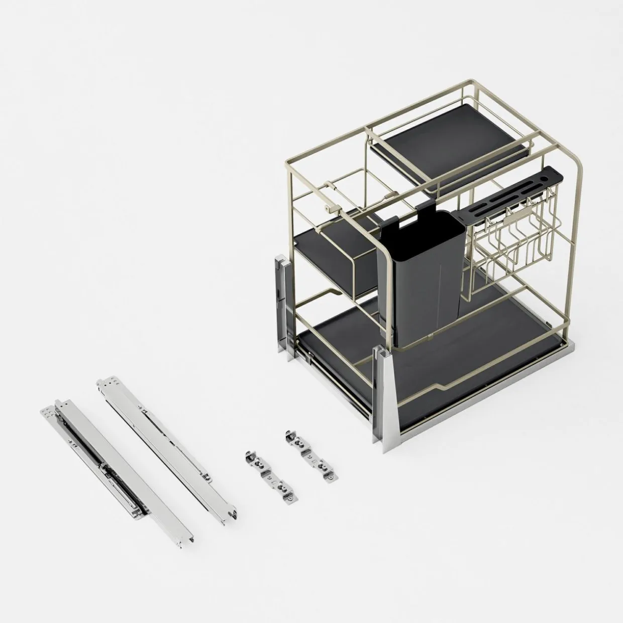 Wszystkie te elementy zaprojektowane ze smakiem i dbałością o detale, zostały przystosowane do montażu na wysuwanych prowadnicach.