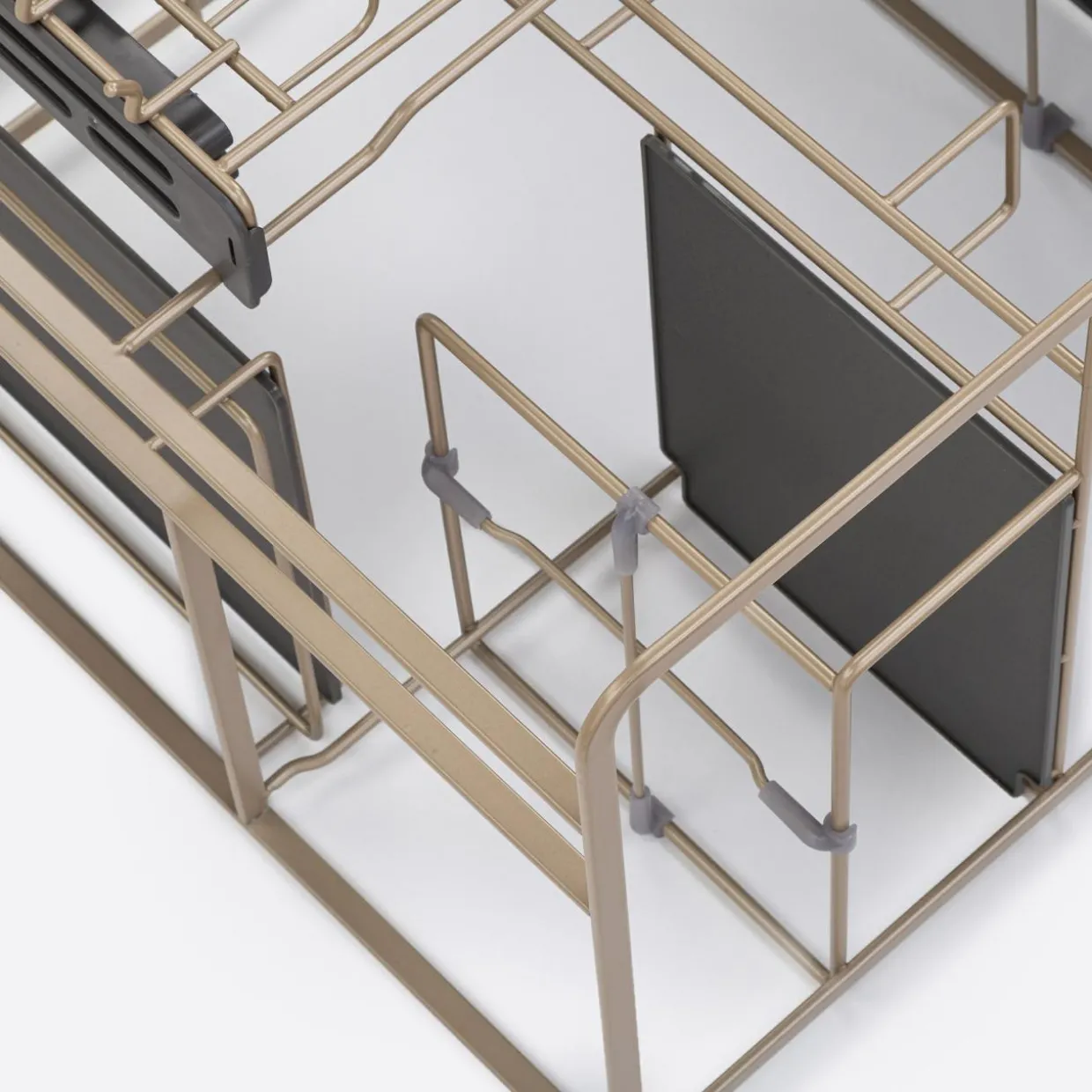 - Relingi koszy zostały wykończone kolorem champagne gold, który ożywi jasne wnętrza i pięknie zaakcentuje kuchnię w klimacie loft oraz retro.
