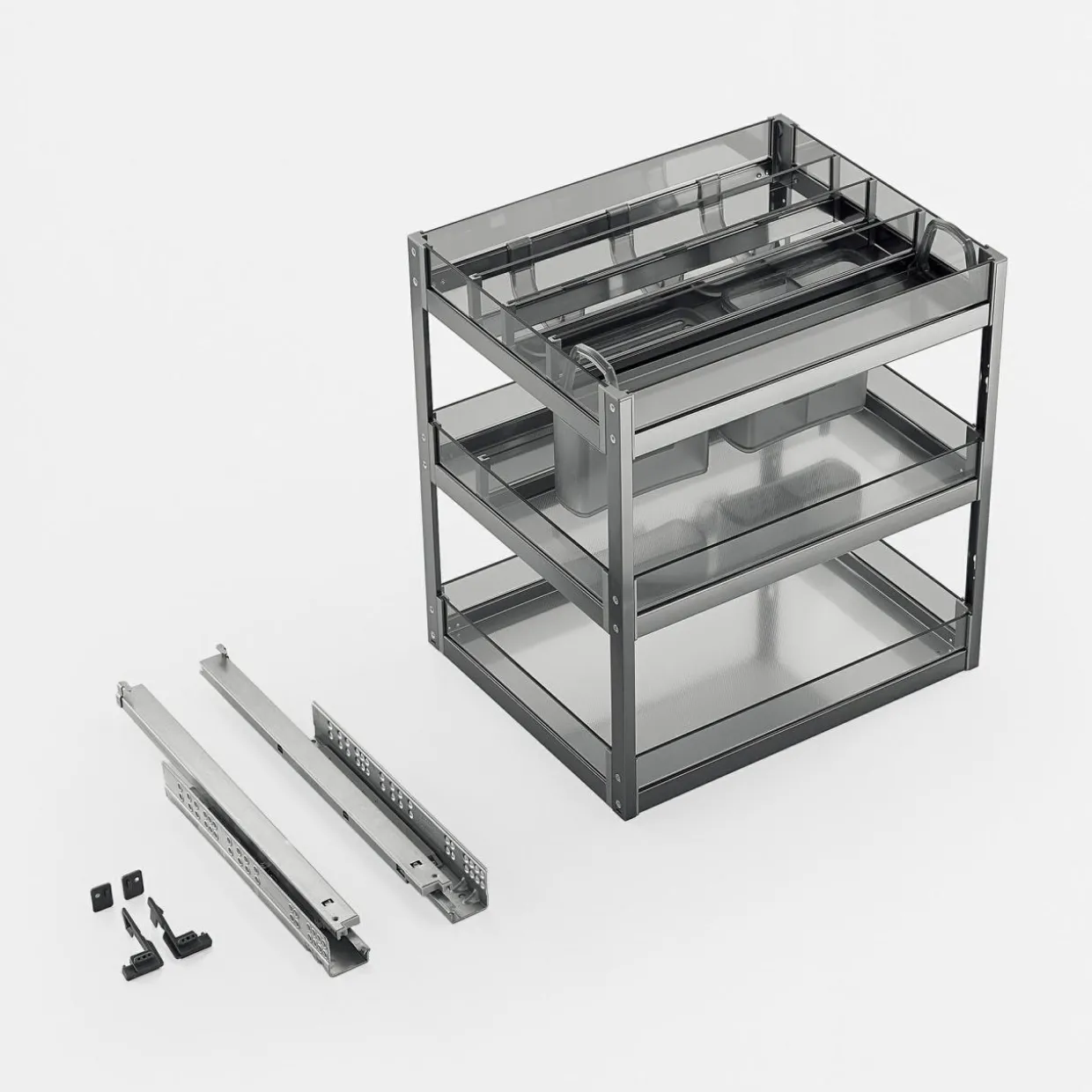 Wszystkie te elementy zaprojektowane ze smakiem i dbałością o detale, zostały przystosowane do montażu na wysuwanych prowadnicach.