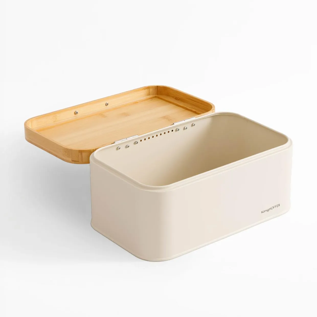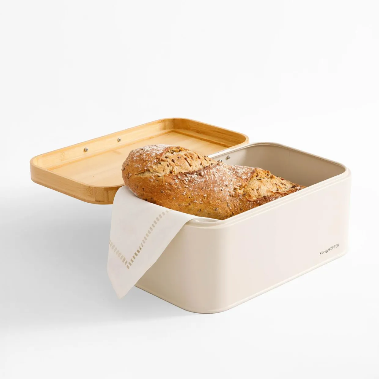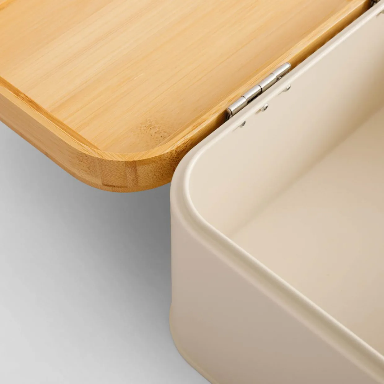 Chlebak z bambusową pokrywą kremowy CAPRI 30,5×17,5×15 cm