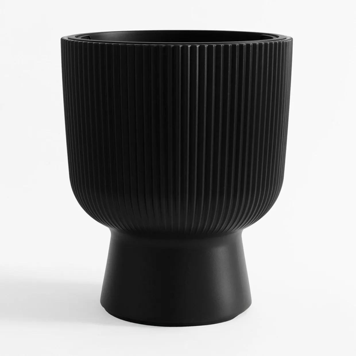 - Zwężany u podstawy, cylindryczny kształt doniczki wprowadza harmonię i klasyczną elegancję.