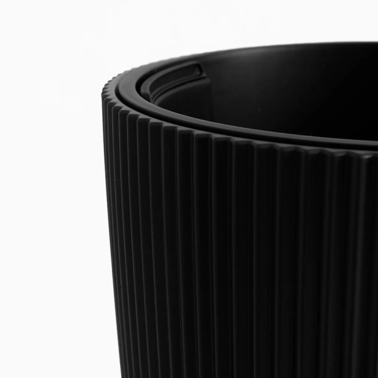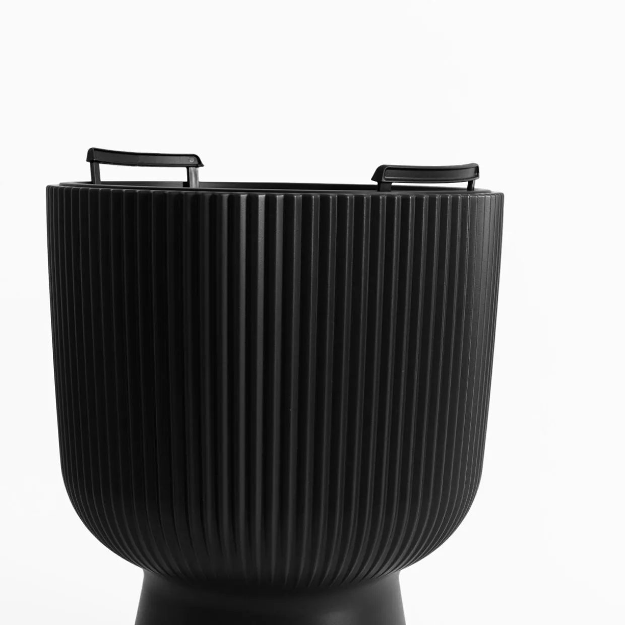 Doniczka posiada wyjmowany wkład z uchwytami w czarnym kolorze.