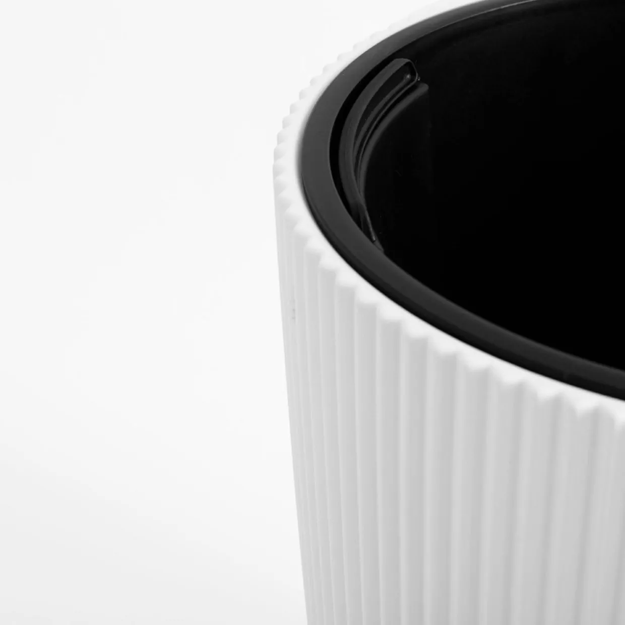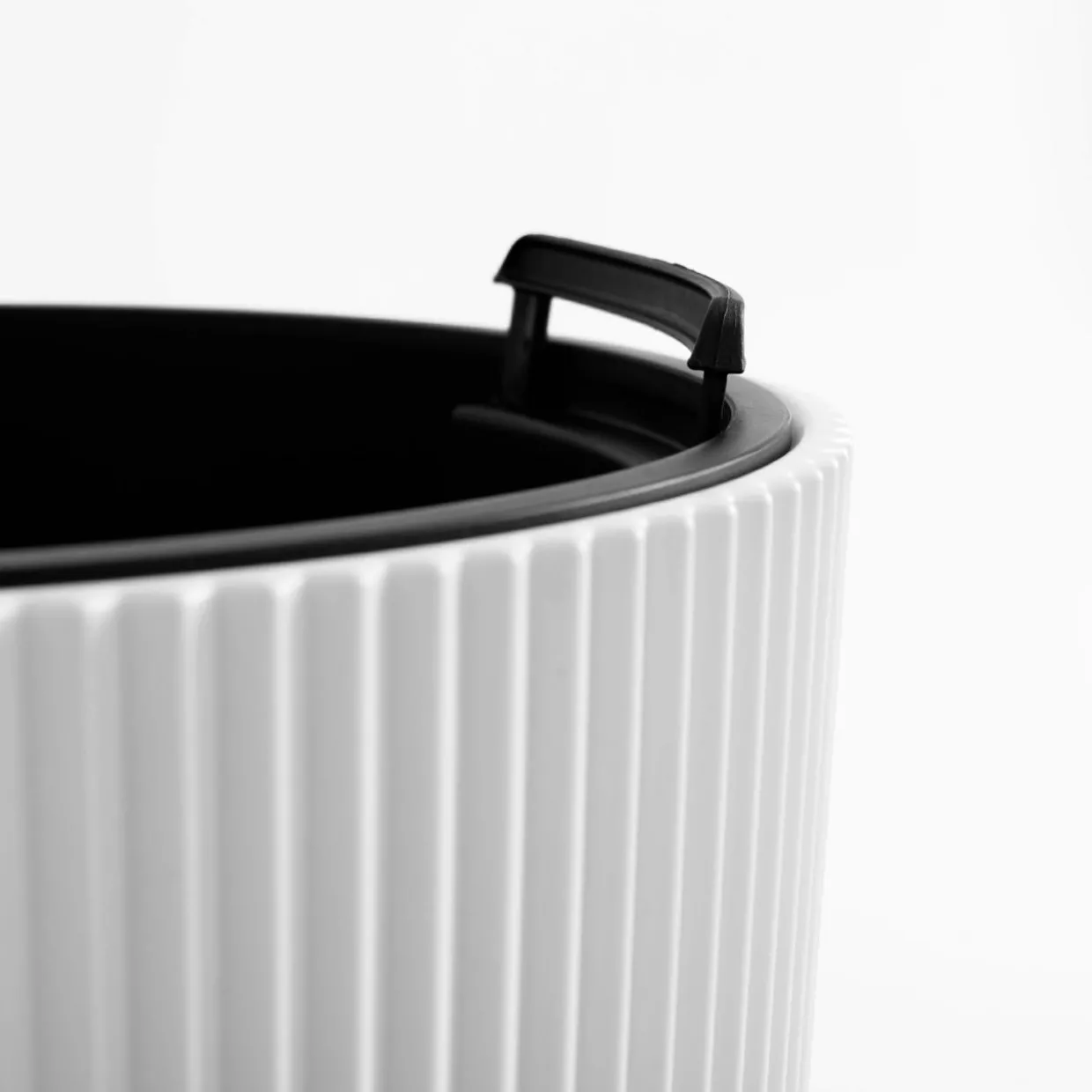 Doniczka posiada wyjmowany wkład z uchwytami w czarnym kolorze.