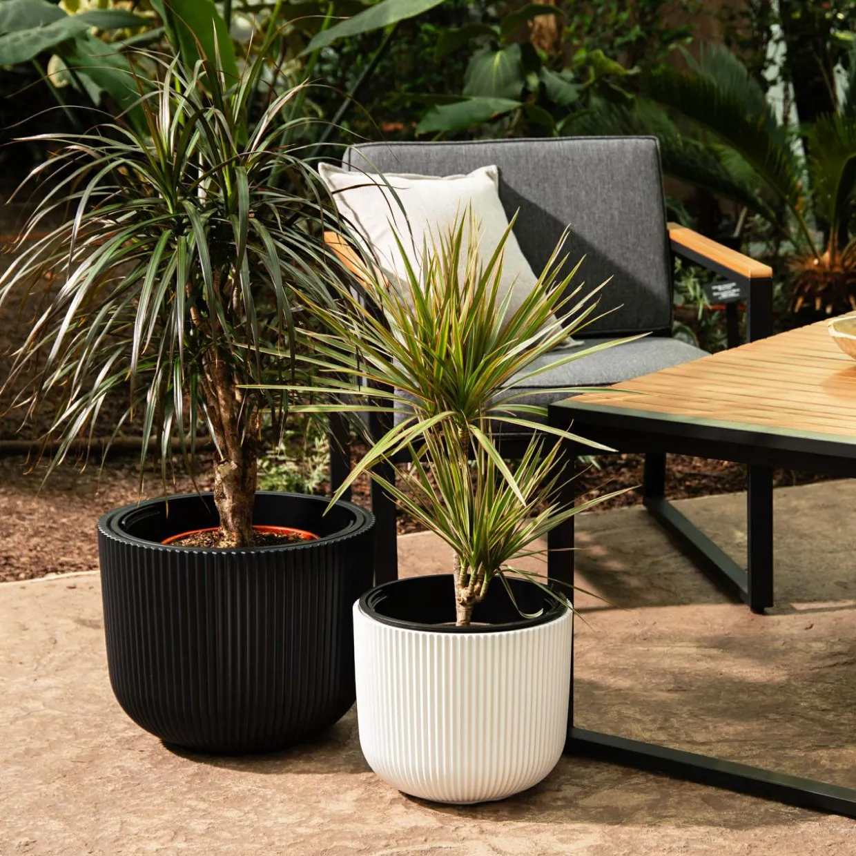- Doniczka wykonana jest z tworzywa sztucznego, odpornego na działanie warunków atmosferycznych. Jest lekka i z łatwością przeniesiesz ją w inne miejsce. Sprawdzi się zarówno w domu, jak i na zewnątrz: na balkonie lub na tarasie.