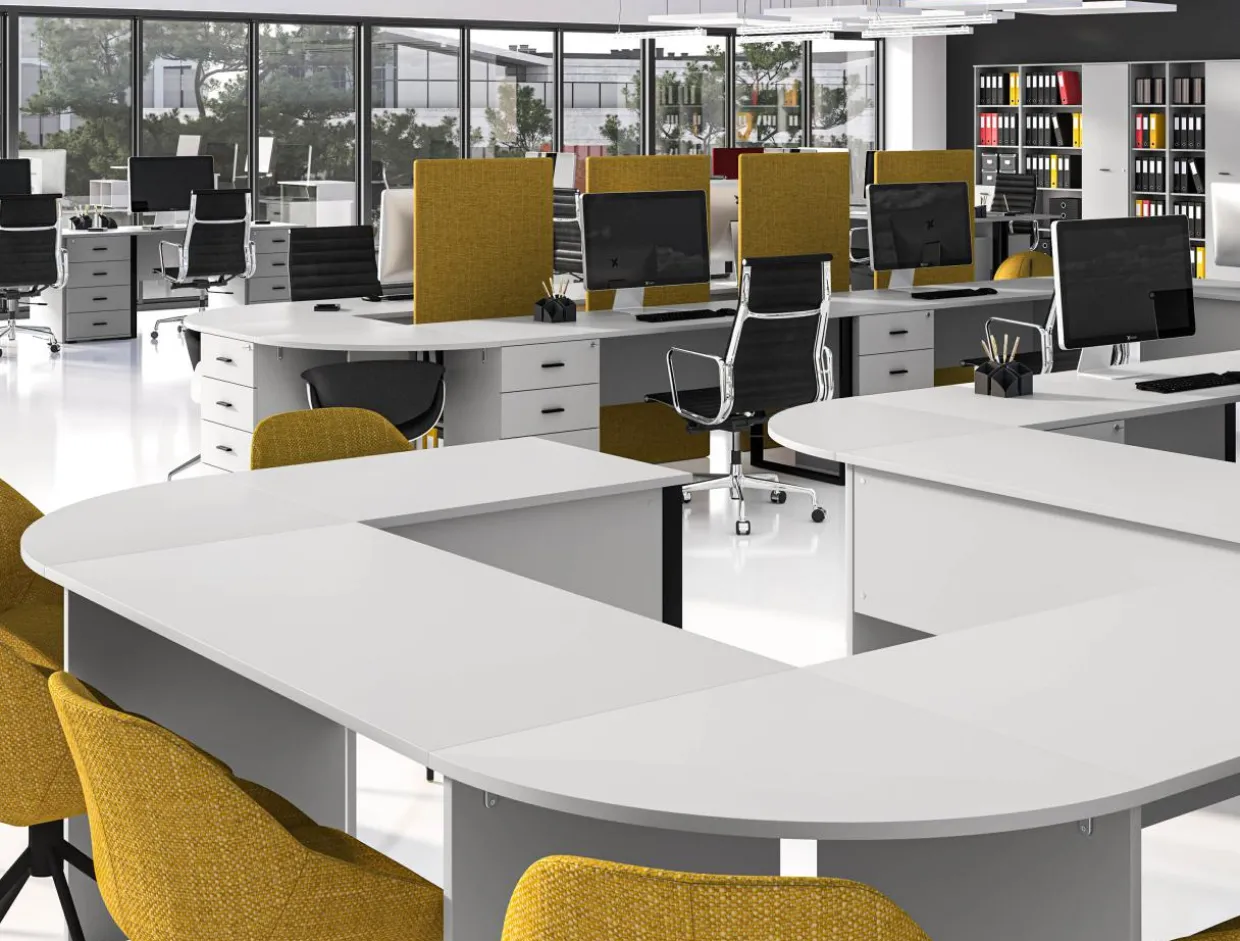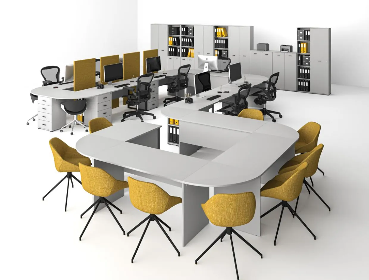 - Dostawki w formie szafek i blatów biurek dopełnią meble, tworząc nowoczesne miejsce pracy.