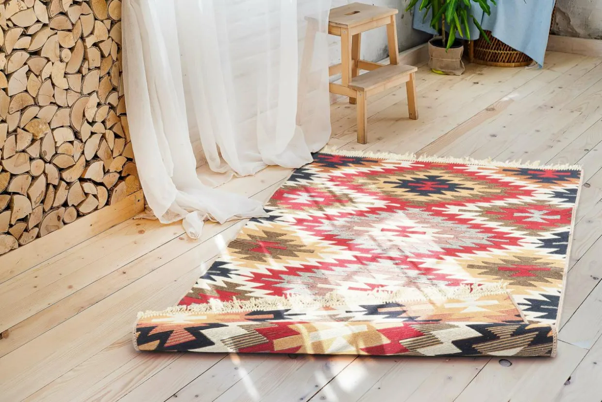 - Dywan tkany na płasko posiada bardzo gęste, zbite runo, dzięki czemu jest odporne na ugniatanie.