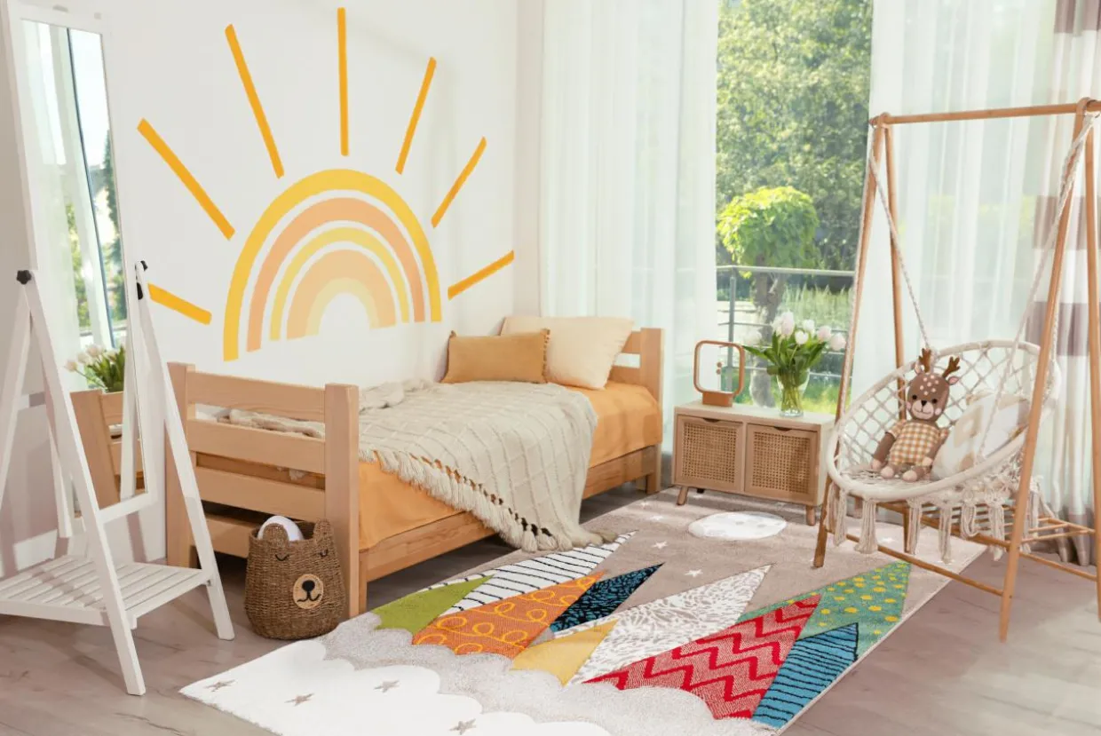 - Bajkowy wzór dywanu odnajdzie się w pokoju dziecięcym, ale jeśli chcesz… umieść go u siebie.