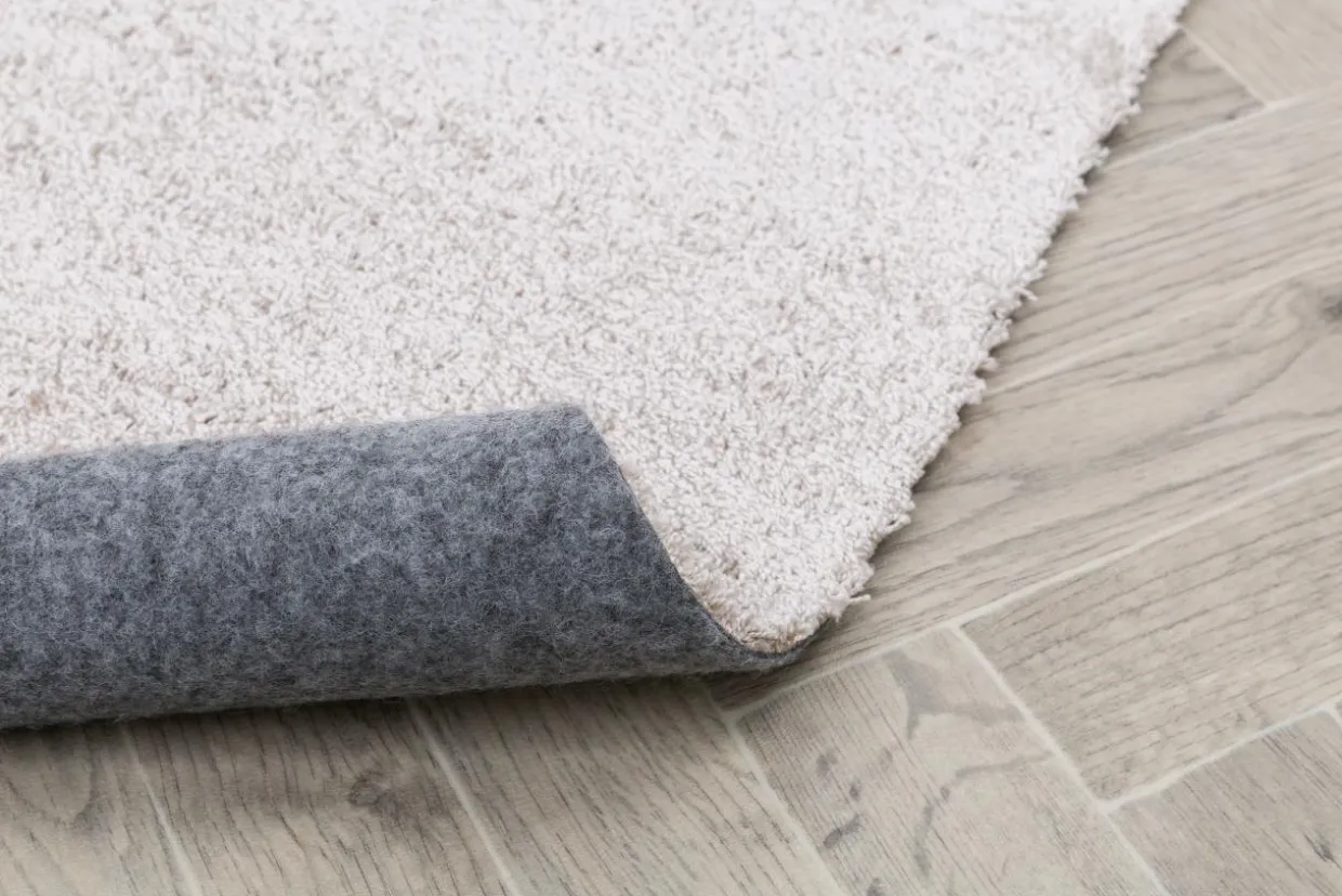 - Spód dywanu wykonano z miękkiego filcu, dzięki czemu jest odpowiedni nawet w przypadku delikatnej – drewnianej podłogi.