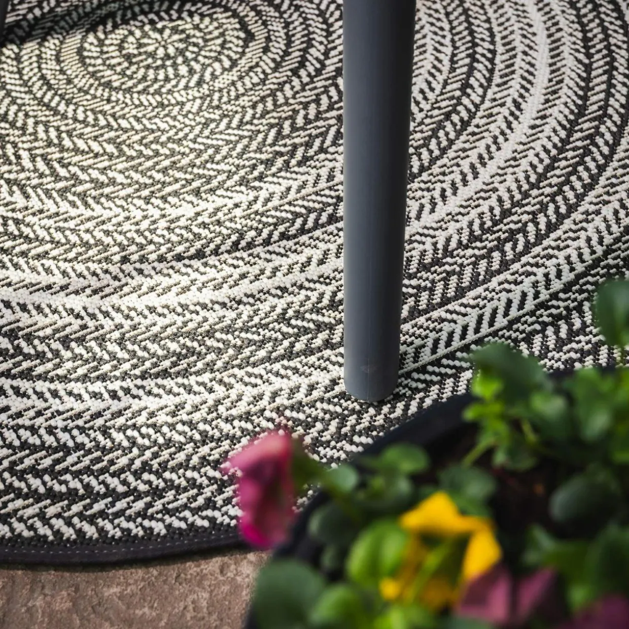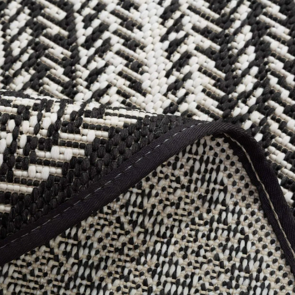- Włókna białe przeplatają się z czarnymi tworząc na powierzchni dywanu przyjemną dla oka kompozycję.