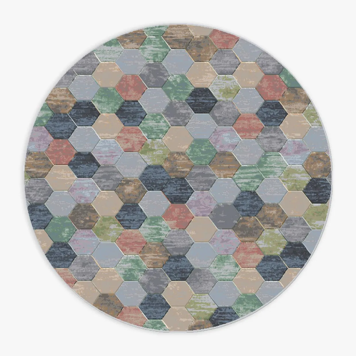 - Jego obecność w pomieszczeniu doda przytulności. Barwne sześciokąty tworzące wzór przypominający plaster miodu urzekają paletą barw. Przeplatają się tu kolorystyczne wątki czerwieni, pomarańczu, fioletu, brązu, szarości, zieleni, niebieskości i granatu.