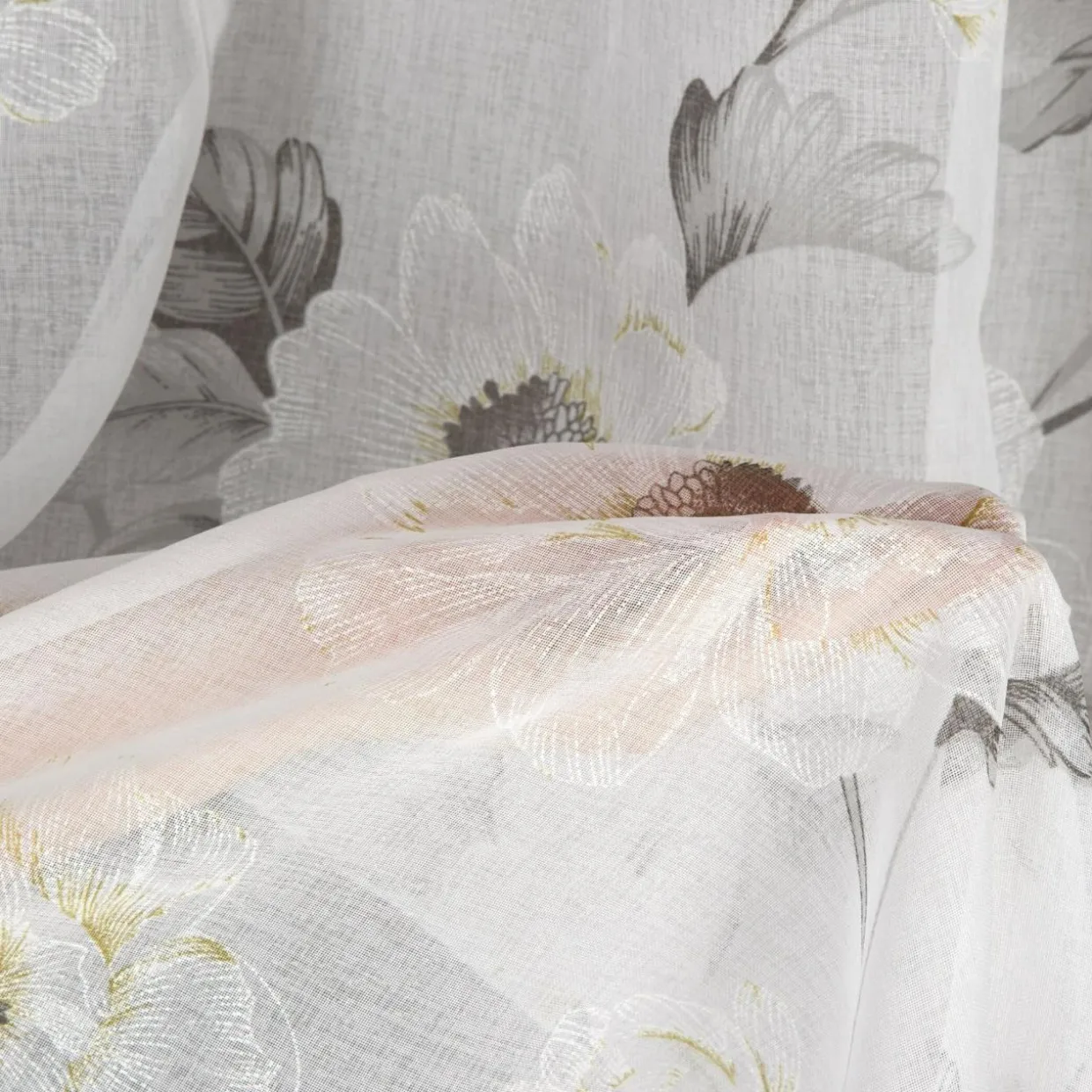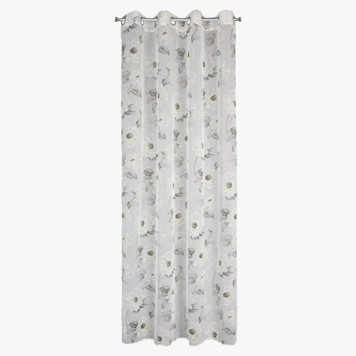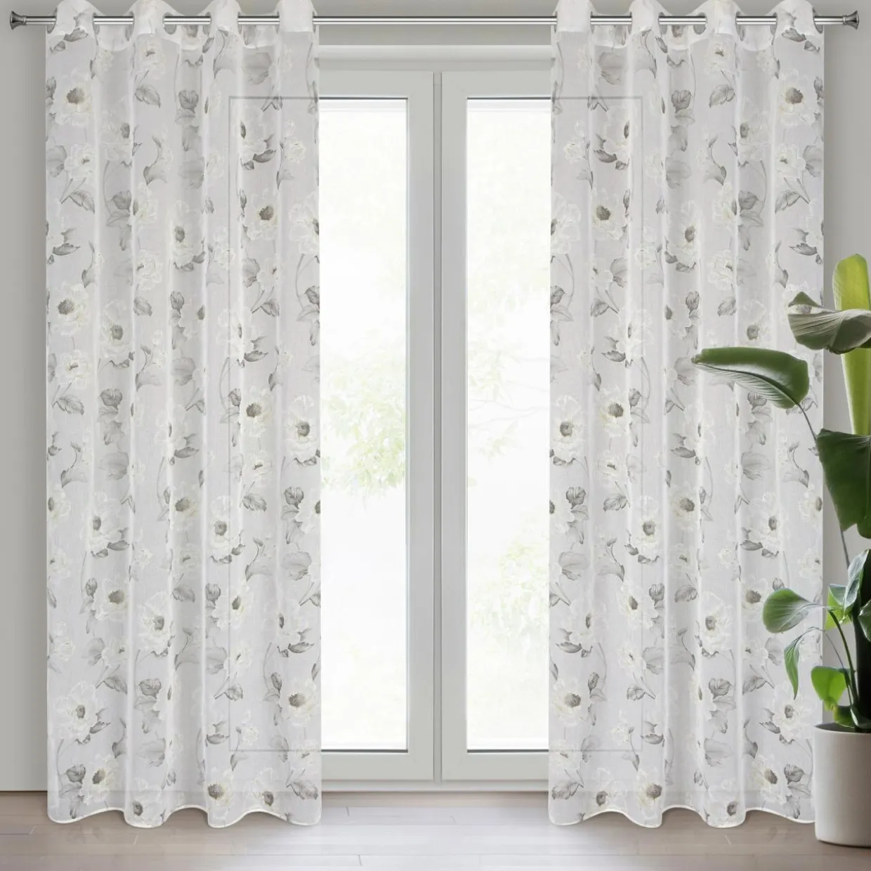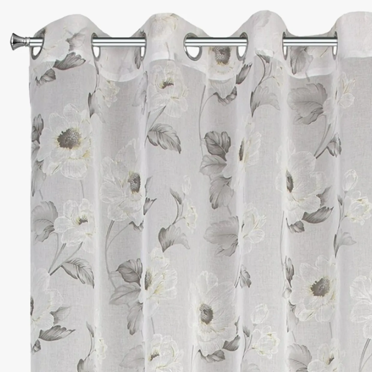Firana do salonu BESSY ozdobi wnętrze w stylu romantycznym lub angielskim. Białe kwiaty na tle jasnej i miękkiej w dotyku tkaniny dodadzą aranżacji delikatności.