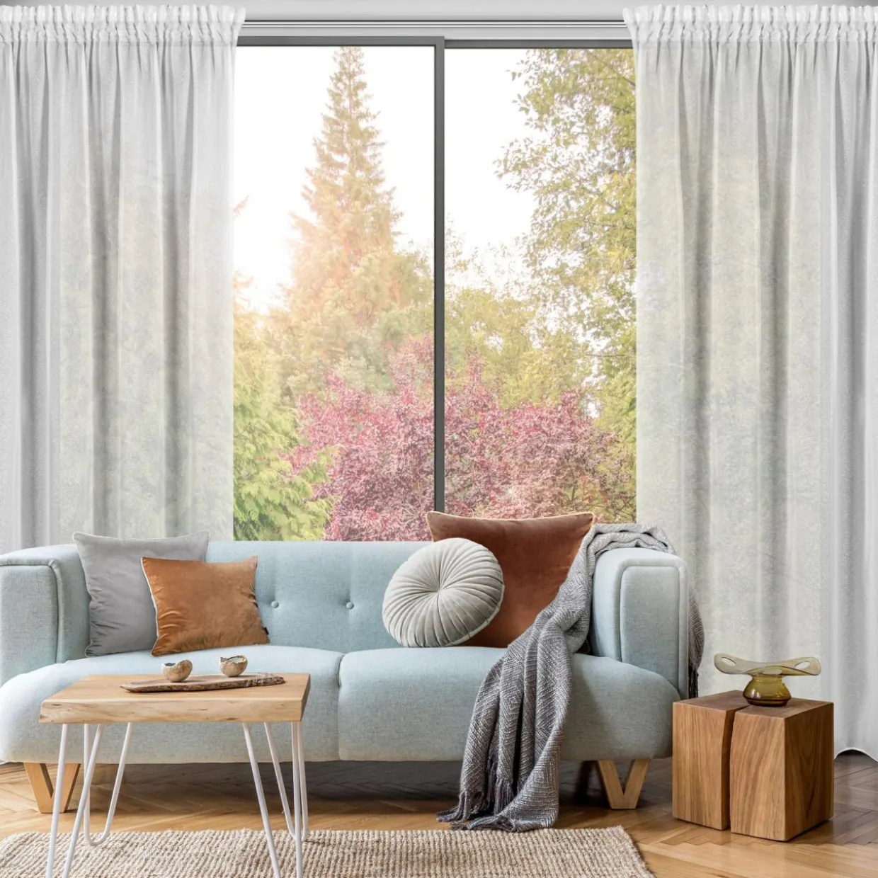 Półprzezroczysta siateczka o oryginalnej strukturze przypomina unoszące się niteczki, co sprawia, że firana dodaje wnętrzu subtelności oraz uczucia lekkości .