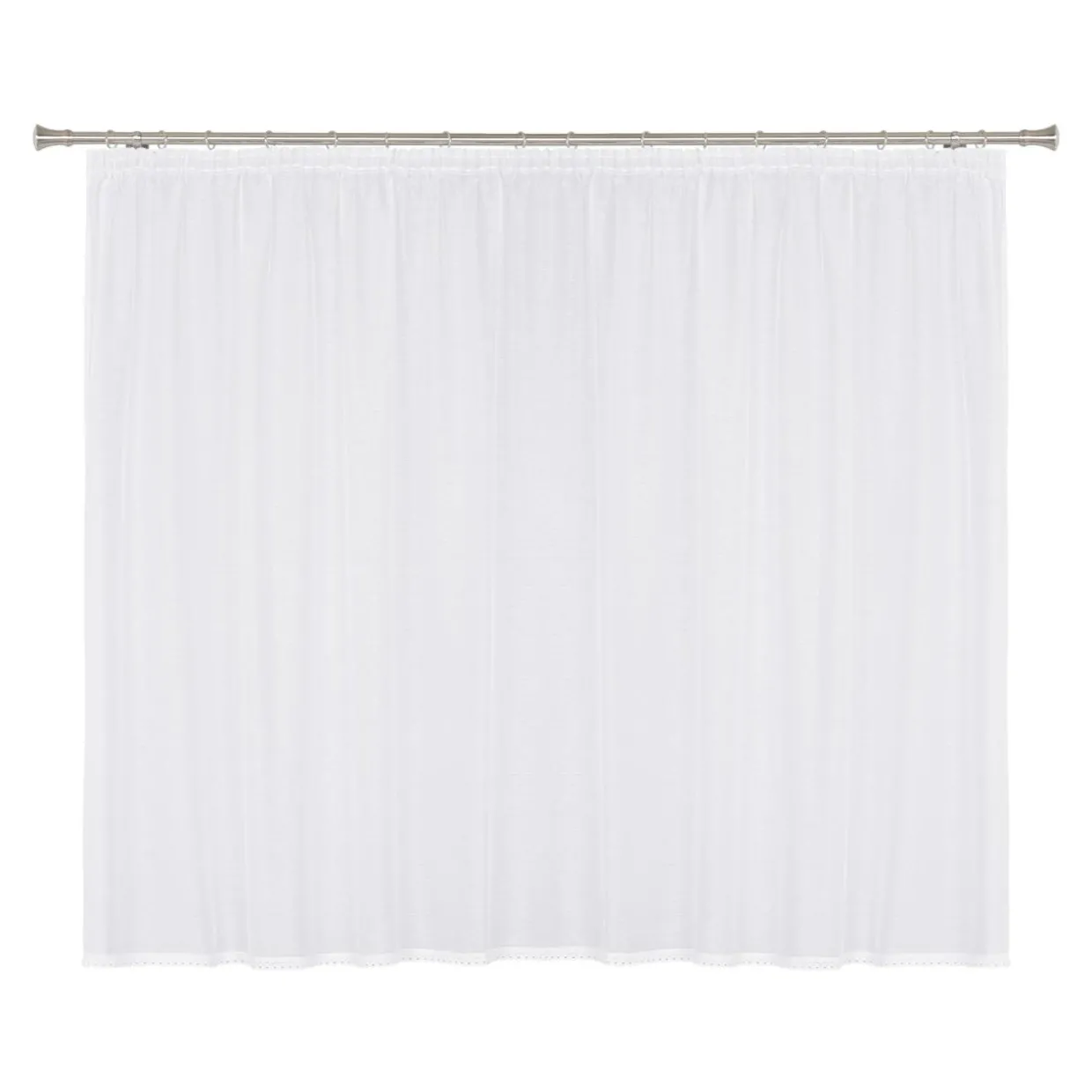 Firana jest naszyta na taśmę marszczącą, więc bez problemu dopasujesz jej szerokość do swojego okna – tworząc ozdobne plisy.