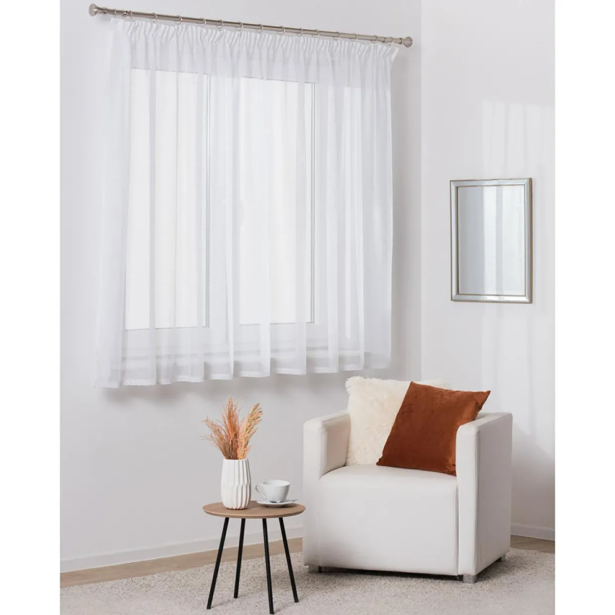 Firana ZIGI obszyta jest od dołu ozdobną, delikatną koronką – stanowić będzie piękny akcent w aranżacji pomieszczenia np. gdy zbliżają się święta i pragniesz nadać mu bardziej klasycznego charakteru.