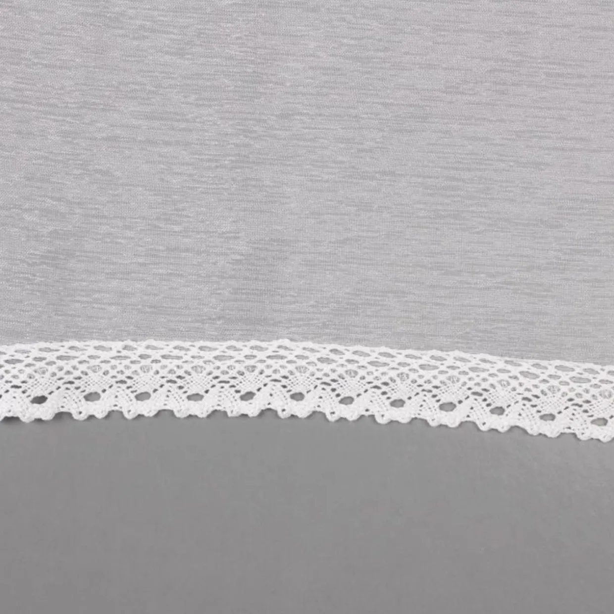 - Dół firany ozdobiono koronką o subtelnym wzorze.