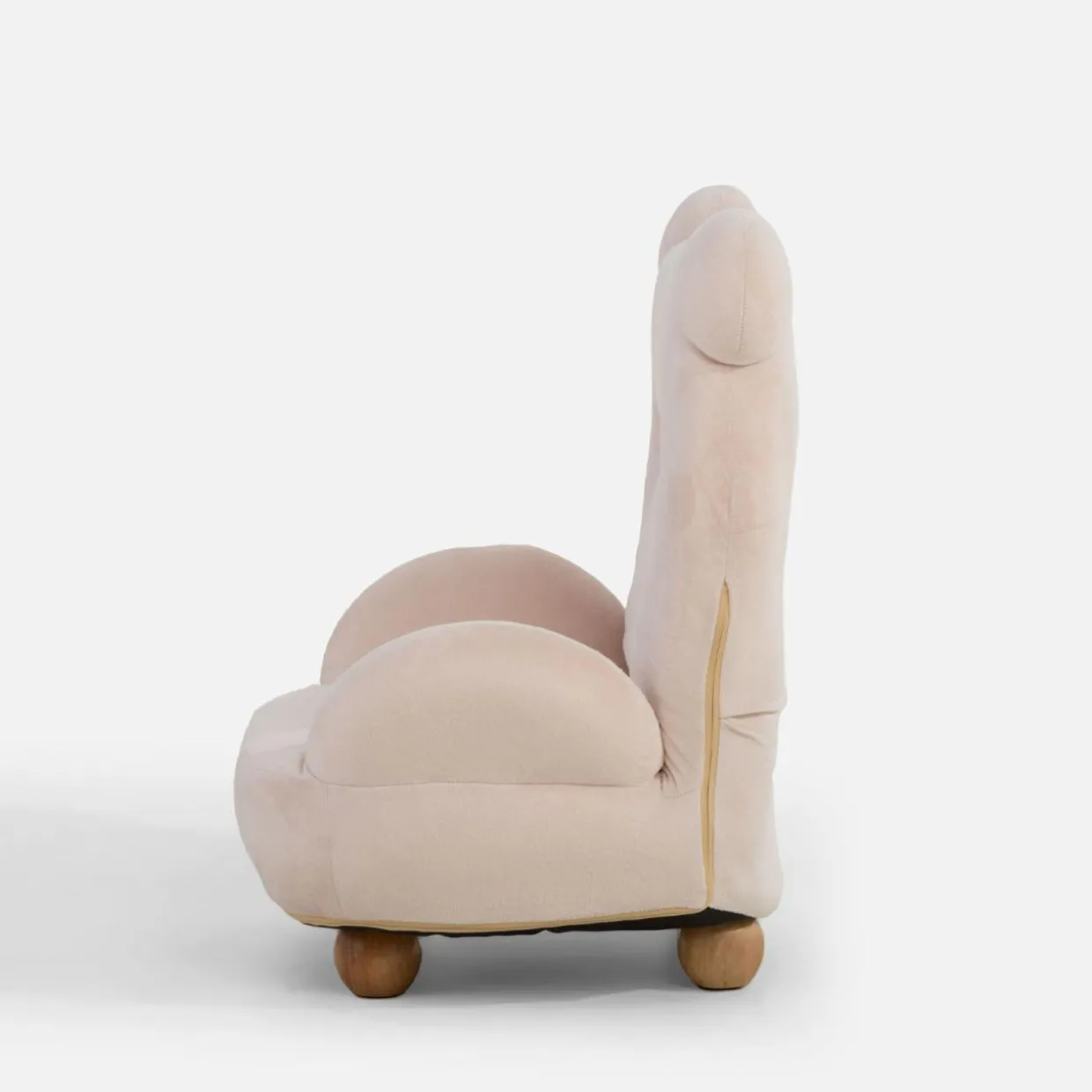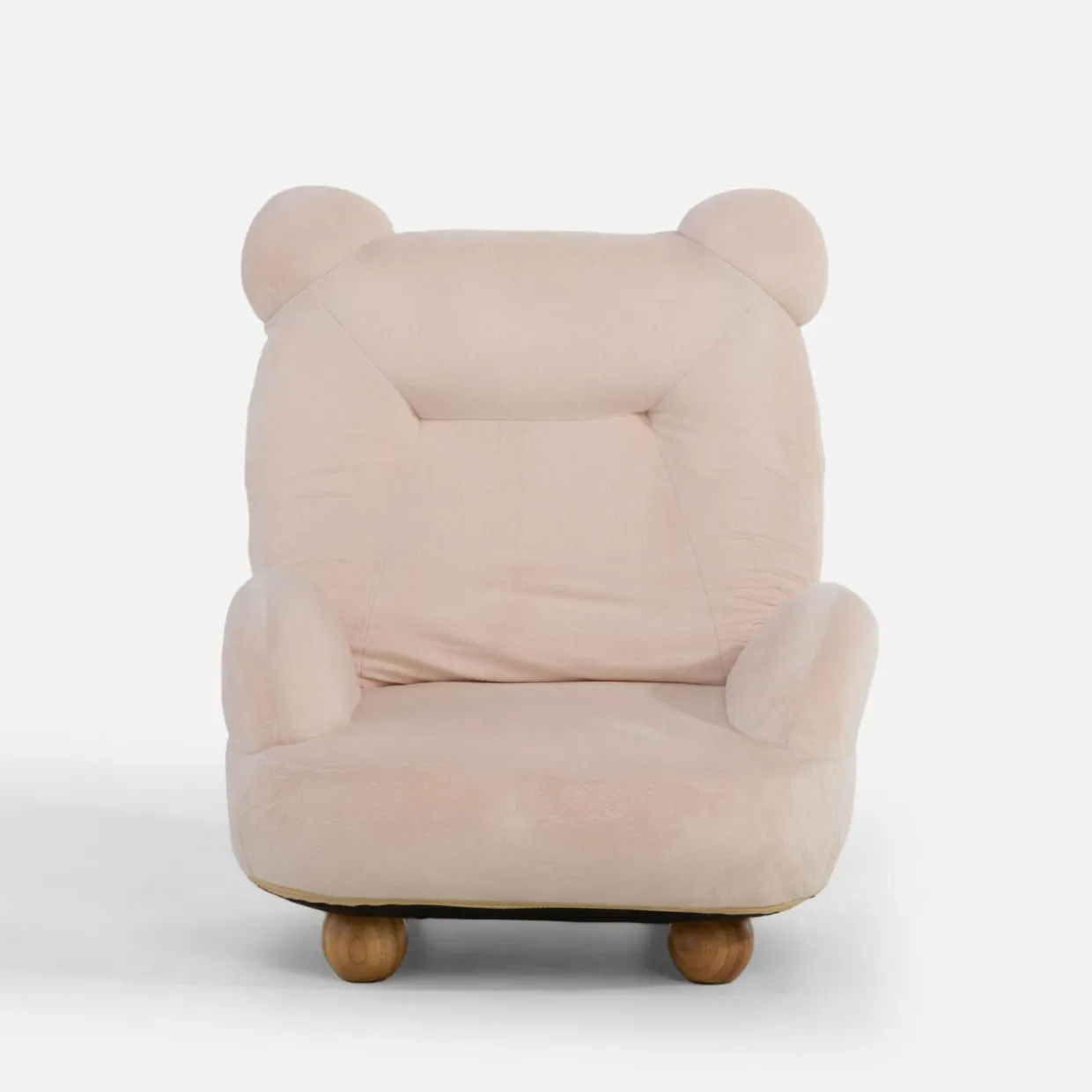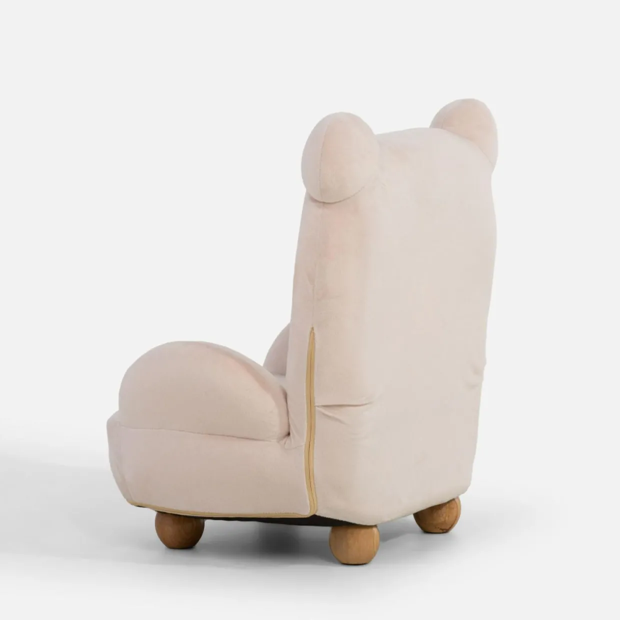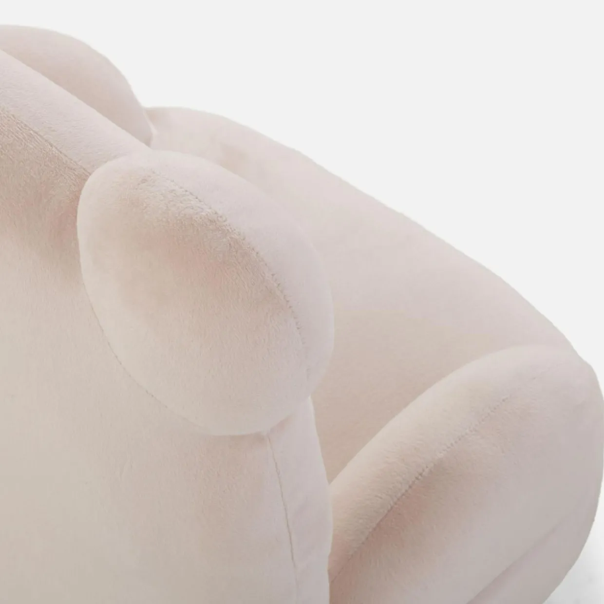 Uroczy fotel AKUKA w kształcie misia, w kolorze beżowym, zachwyca nietuzinkowym designem.