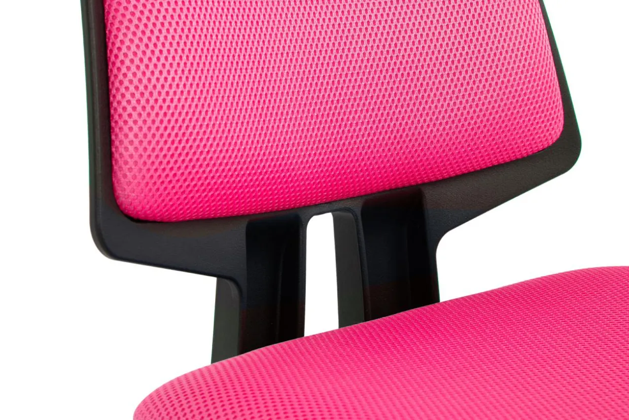 - Obicie fotela zostało wykonane z przewiewnej siatki mesh w kolorze różowym.