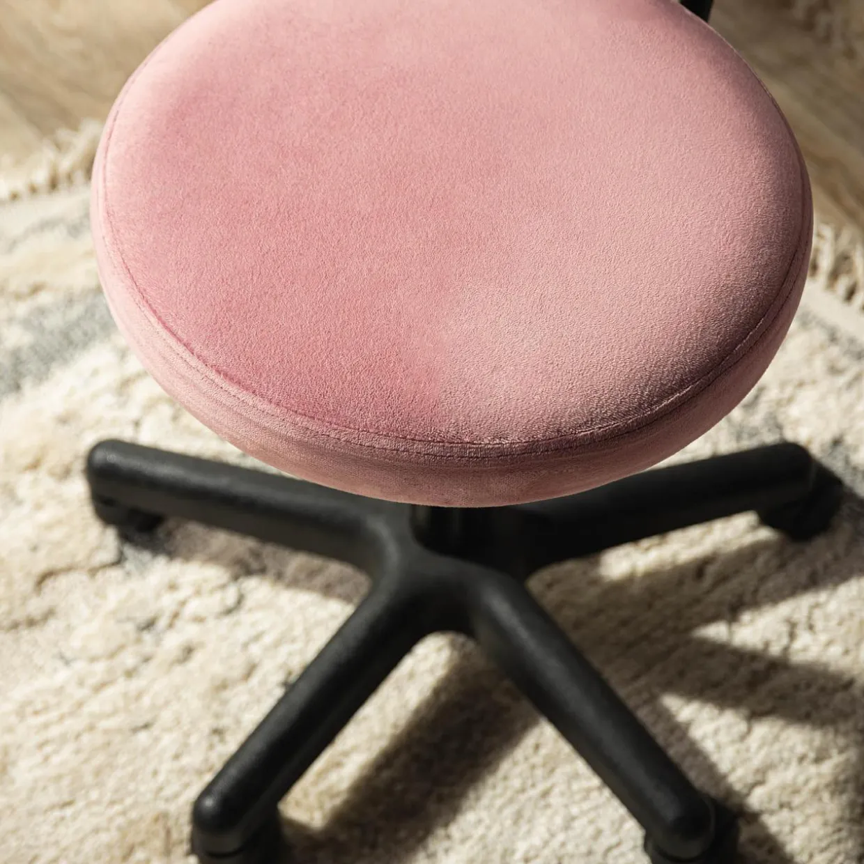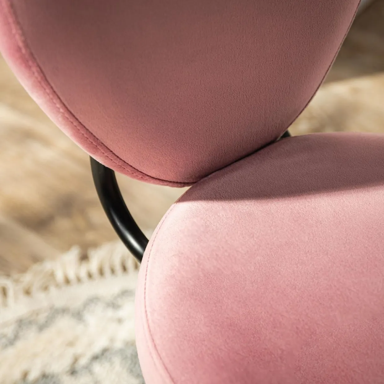 - Do obicia fotela użyto przyjemnego w dotyku weluru w kolorze różowym.