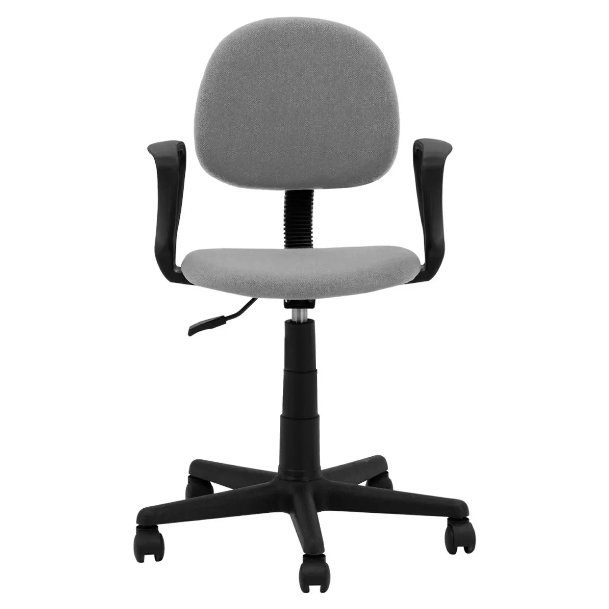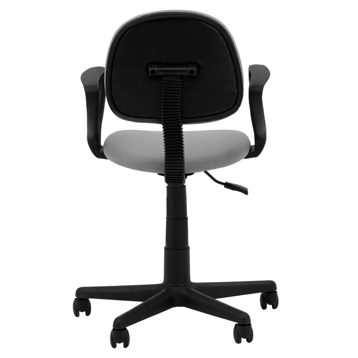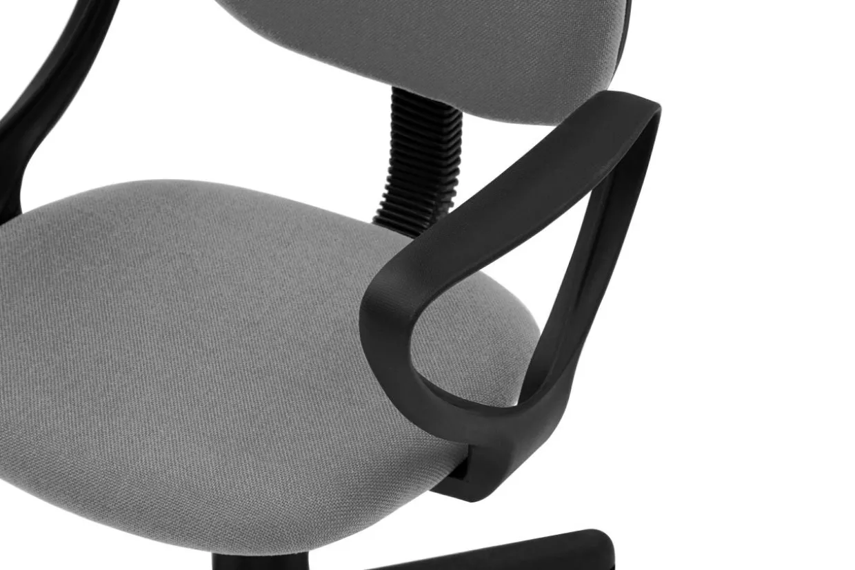 Wybierz fotel obrotowy NUPIG z czarną podstawą i szarą tapicerką.