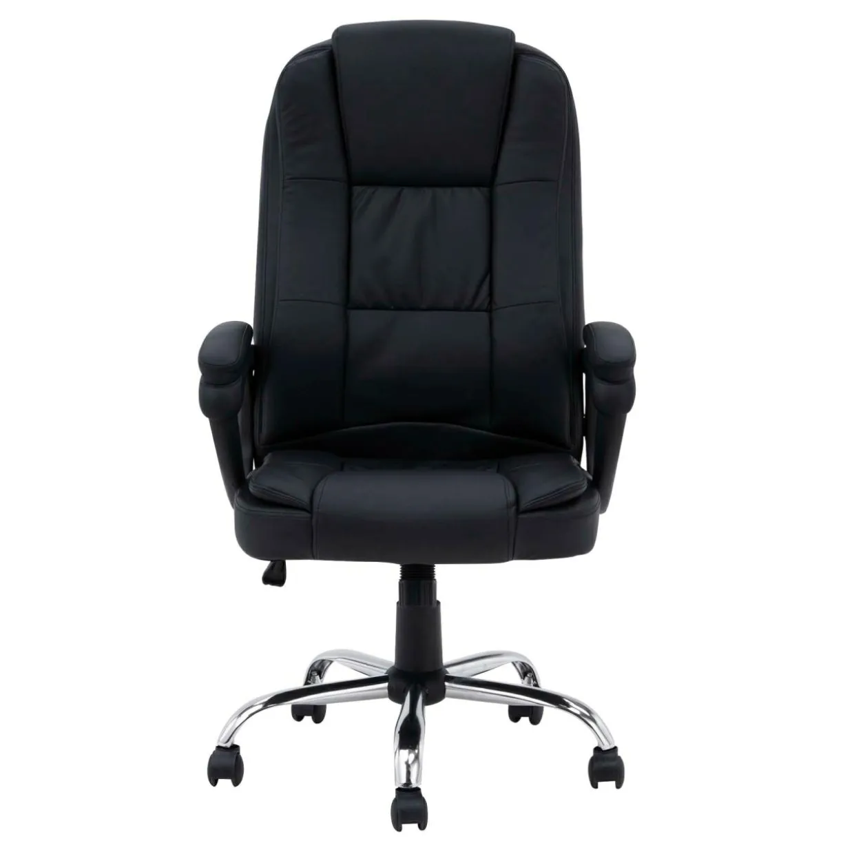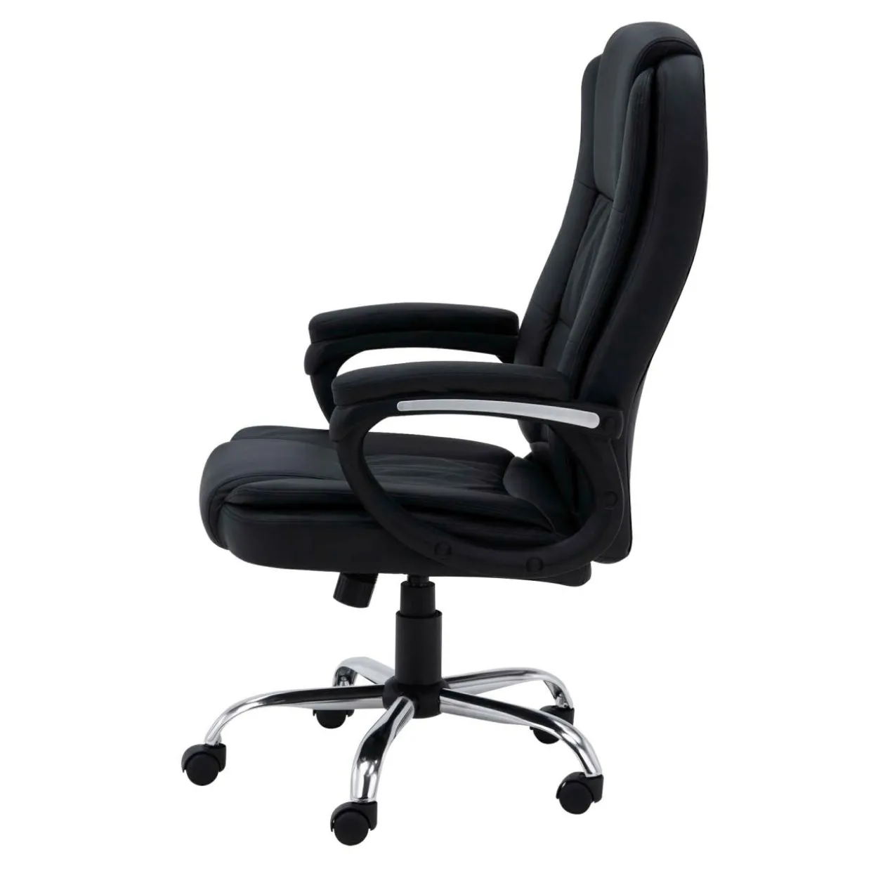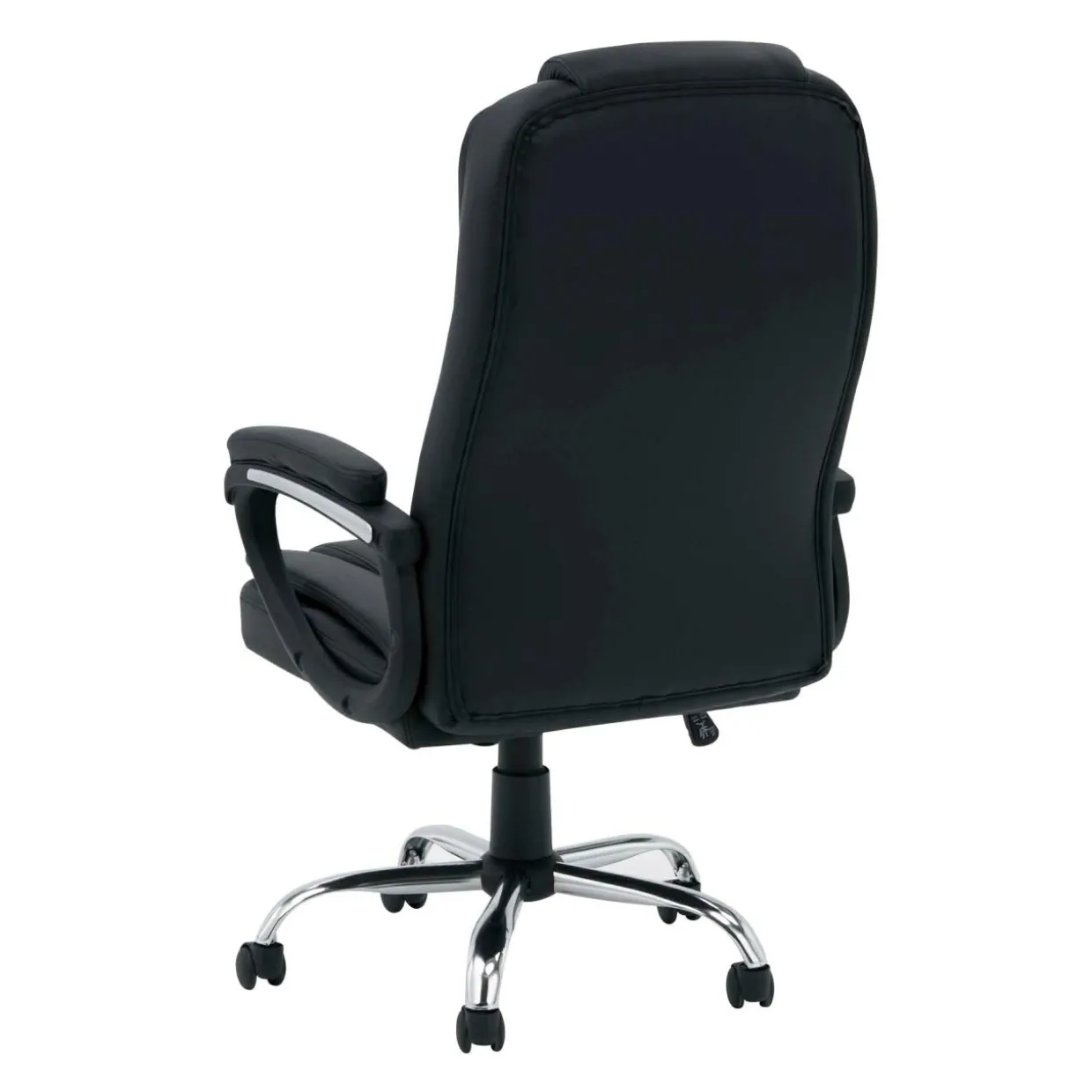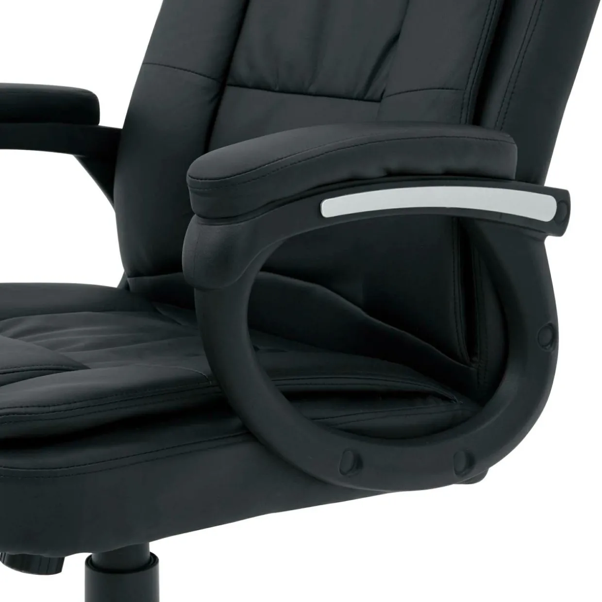Fotel biurowy UTVIK wykończony ekoskórą w czarnym, matowym kolorze stworzy estetyczną parę z minimalistycznym, industrialnym biurkiem.