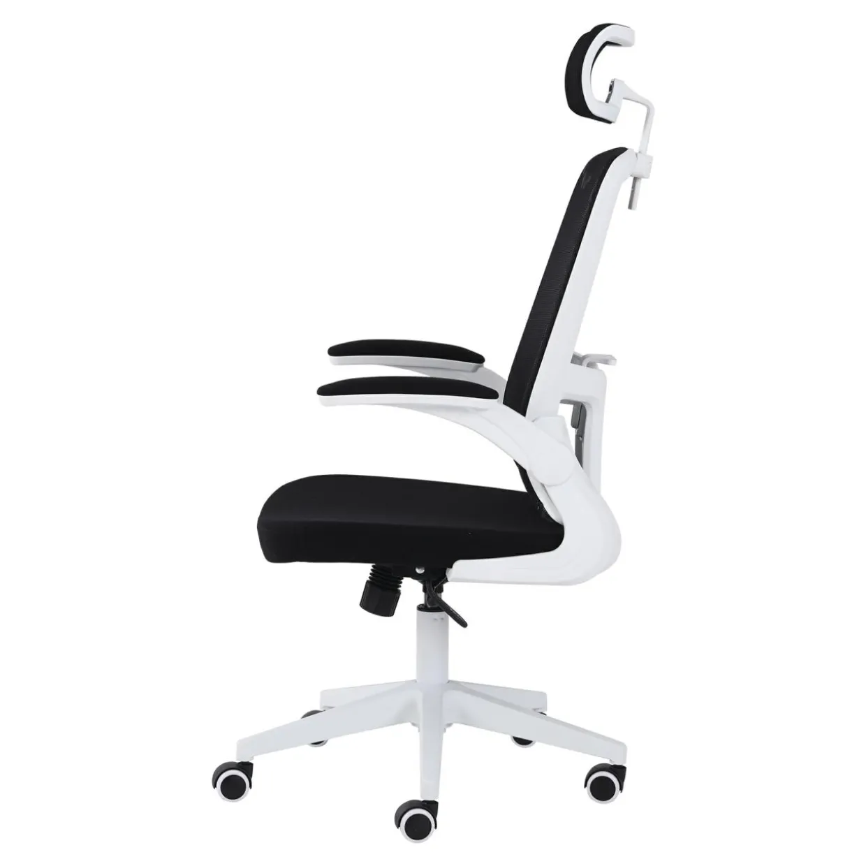 Fotel ma nowoczesny wygląd i regulowany zagłówek, który pomoże utrzymać prawidłową pozycję ciała podczas Twojej pracy przy biurku.