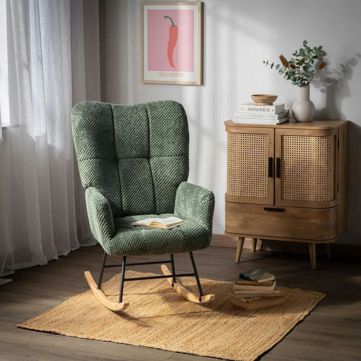 Marzysz o chwili dla siebie lub krótkiej drzemce? Fotel bujany JEXLA posiada płozy zamiast nóg, których delikatne bujanie ukoi Twoje myśli.