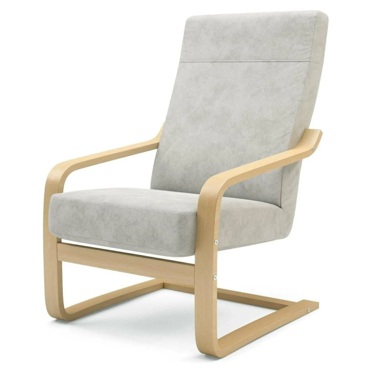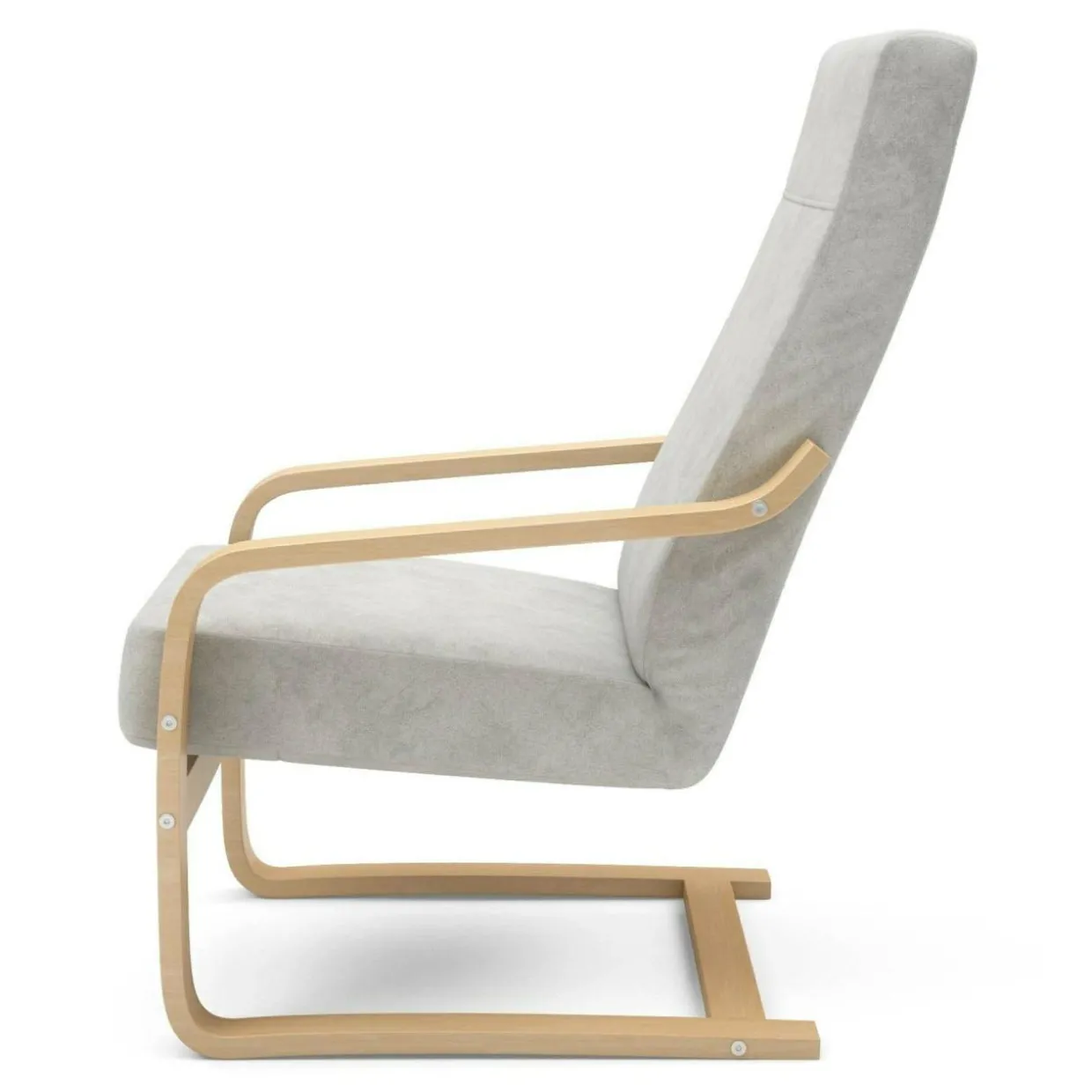 Naturalne drewno bukowe jest idealne do budowy tego typu stelaża, jego odpowiednia elastyczność zapewnia trwałość i komfort mebla, dodatkowo zwiększając jego walory wizualne. Siedzisko i oparcie fotela przeszyto w tkaninie ALFA, o przyjemnej w dotyku fakturze.
