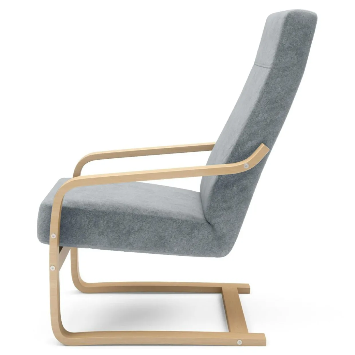 Naturalne drewno bukowe jest idealne do budowy tego typu stelaża, jego odpowiednia elastyczność zapewnia trwałość i komfort mebla, dodatkowo zwiększając jego walory wizualne. Siedzisko i oparcie fotela przeszyto w tkaninie ALFA, o przyjemnej w dotyku fakturze.
