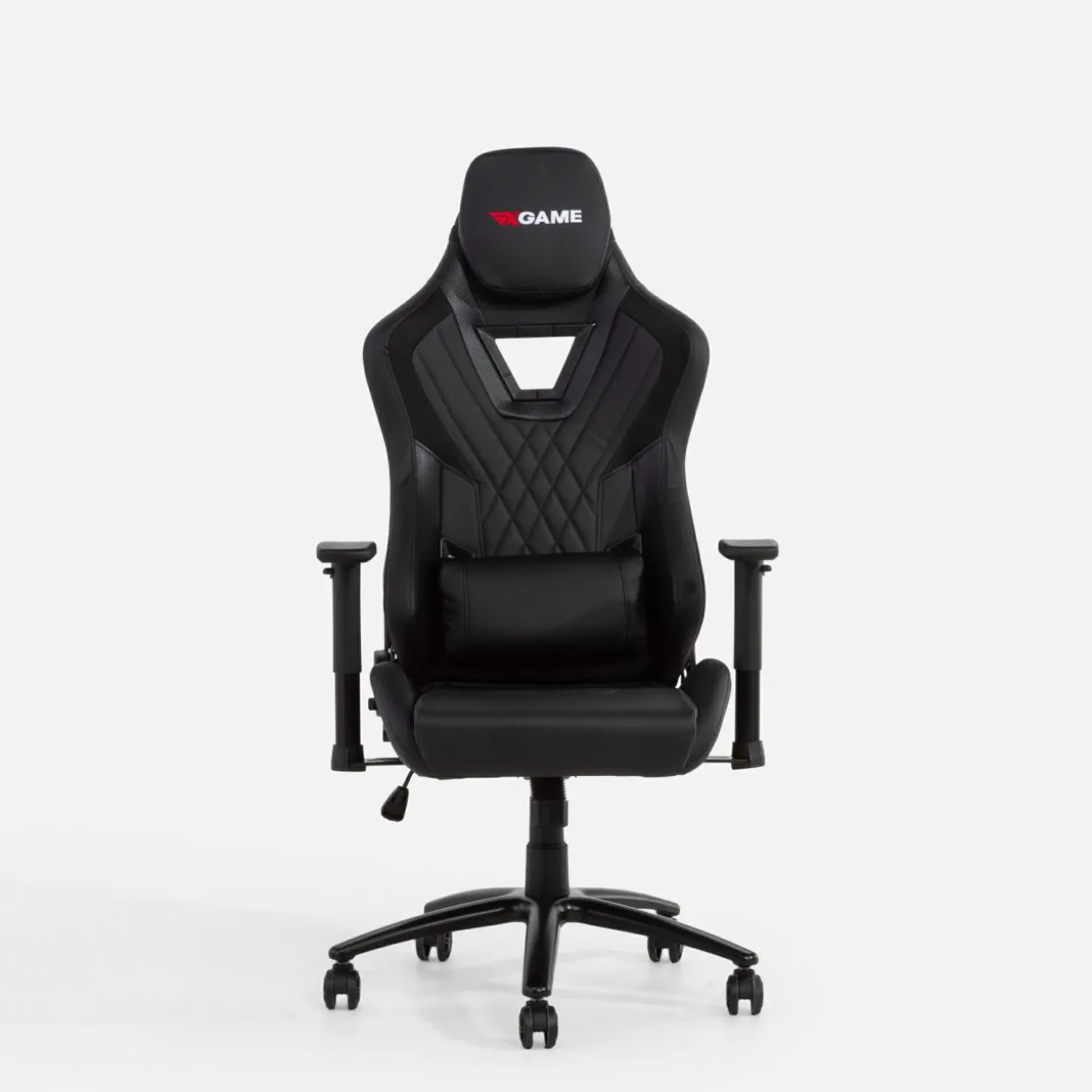 - Obicie z ekoskóry w czarnym kolorze świetnie dopełni aranżację strefy gamingowej.