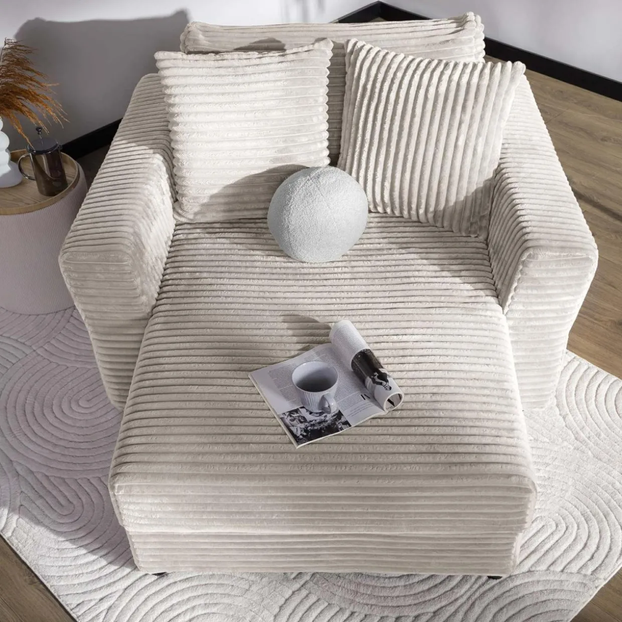 - Obicie z puszystego sztruksu umili Ci chłodne wieczory – podczas siedzenia poczujesz przyjemne otulenie.