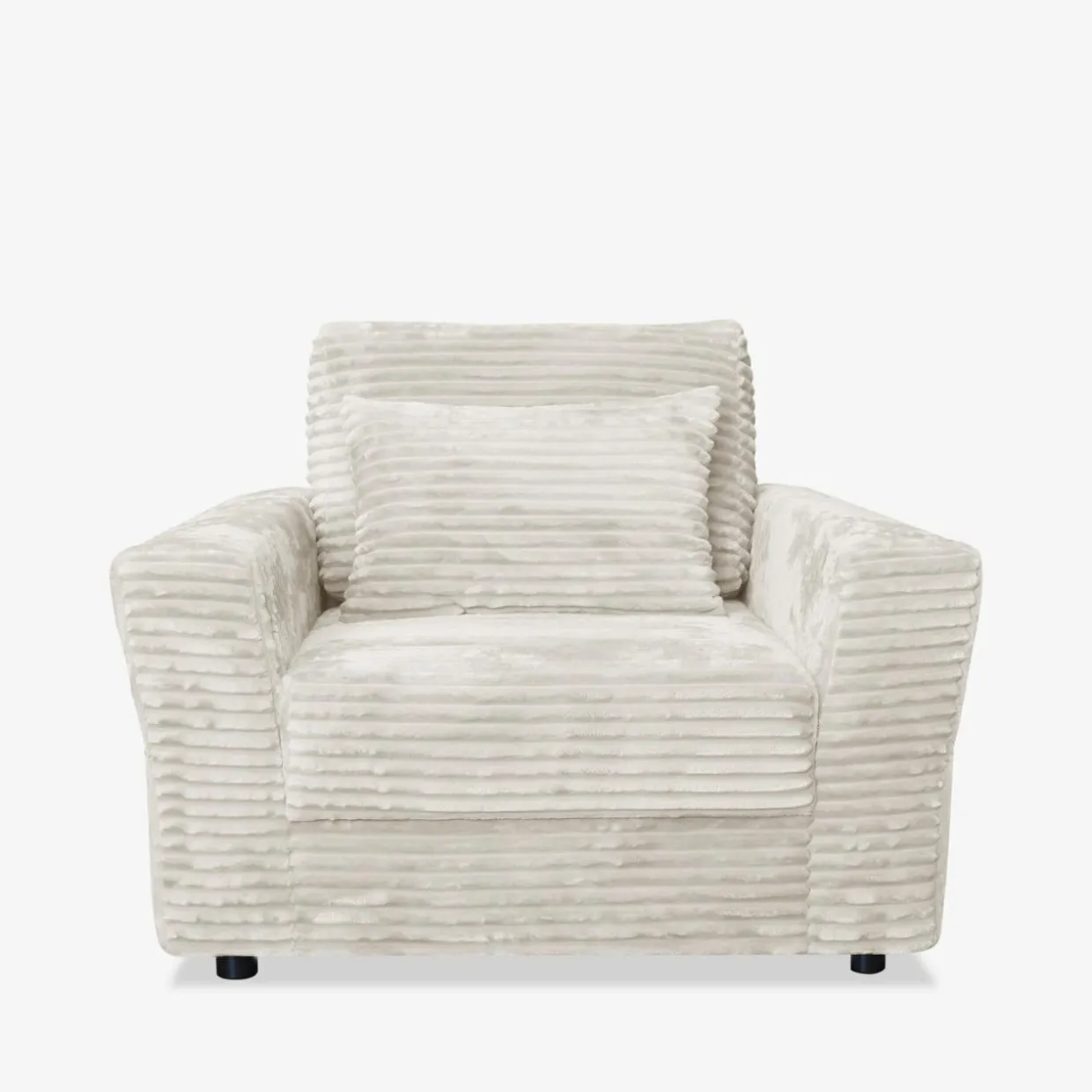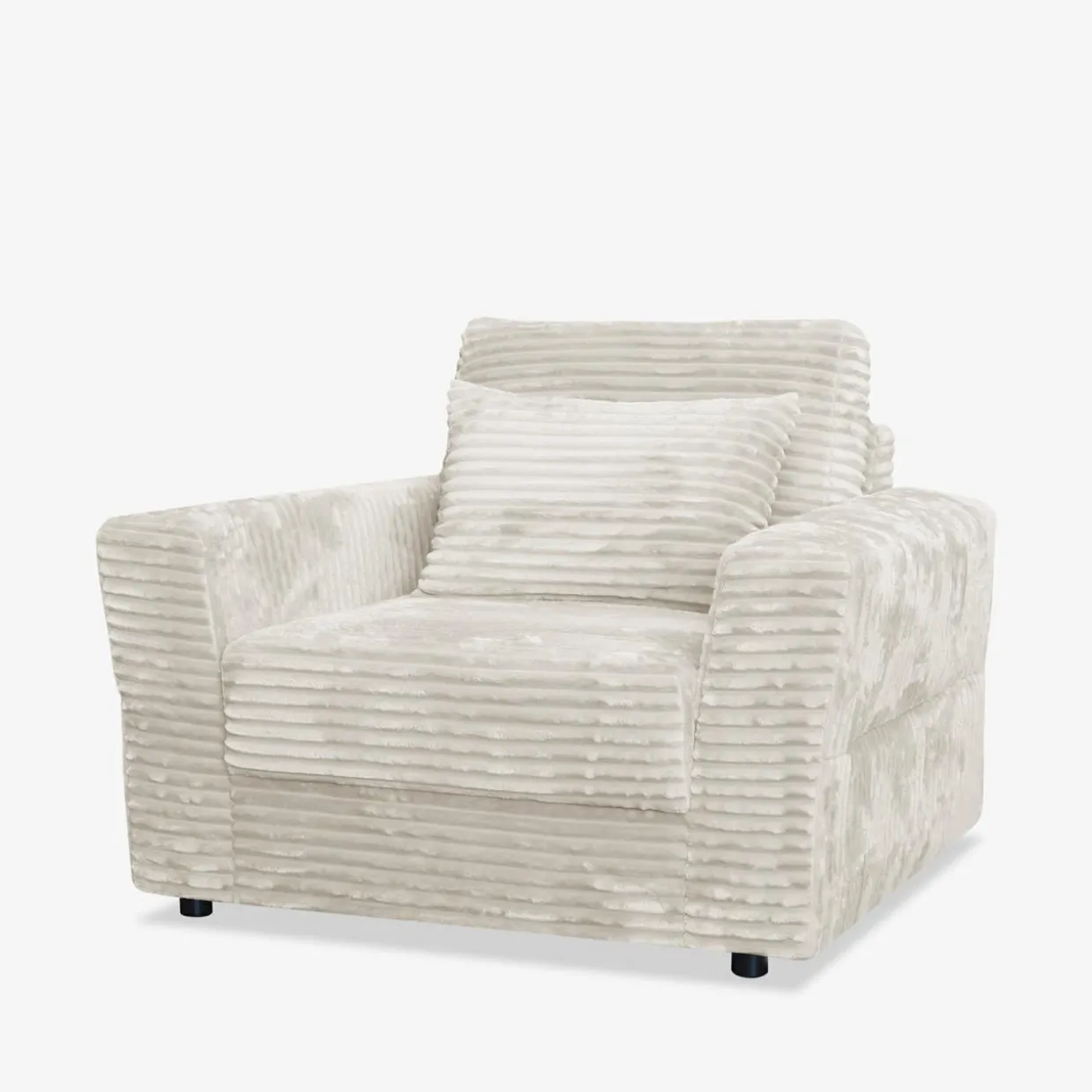 - Fotel pokryto puszystym sztruksem – siadając na nim, od razu poczujesz przyjemną miękkość i otulenie.
