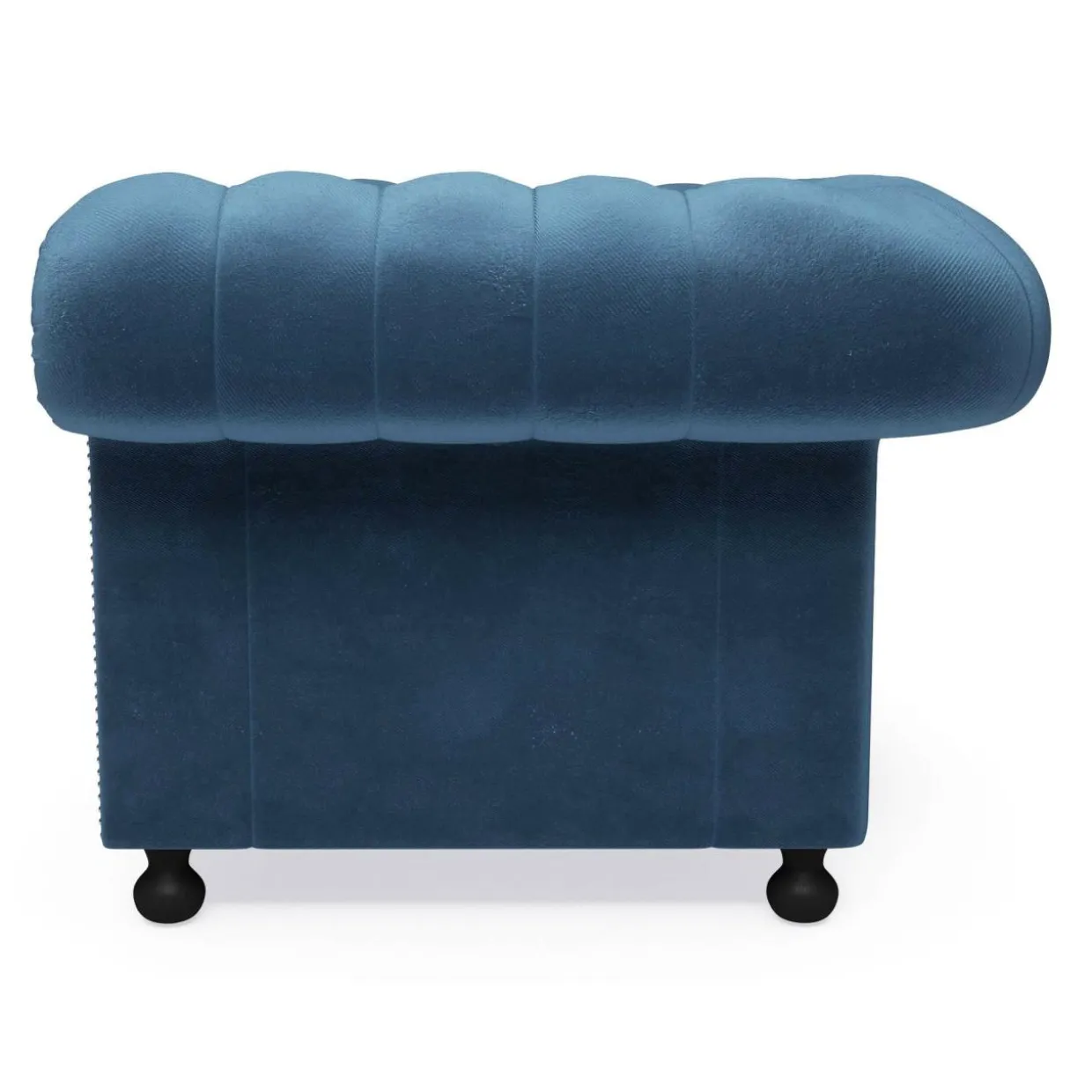 - Wewnętrzną część oparcia i wywiniętych na zewnątrz podłokietników pokryto pikowaniem oraz ozdobnymi guzikami w kolorze tapicerki.