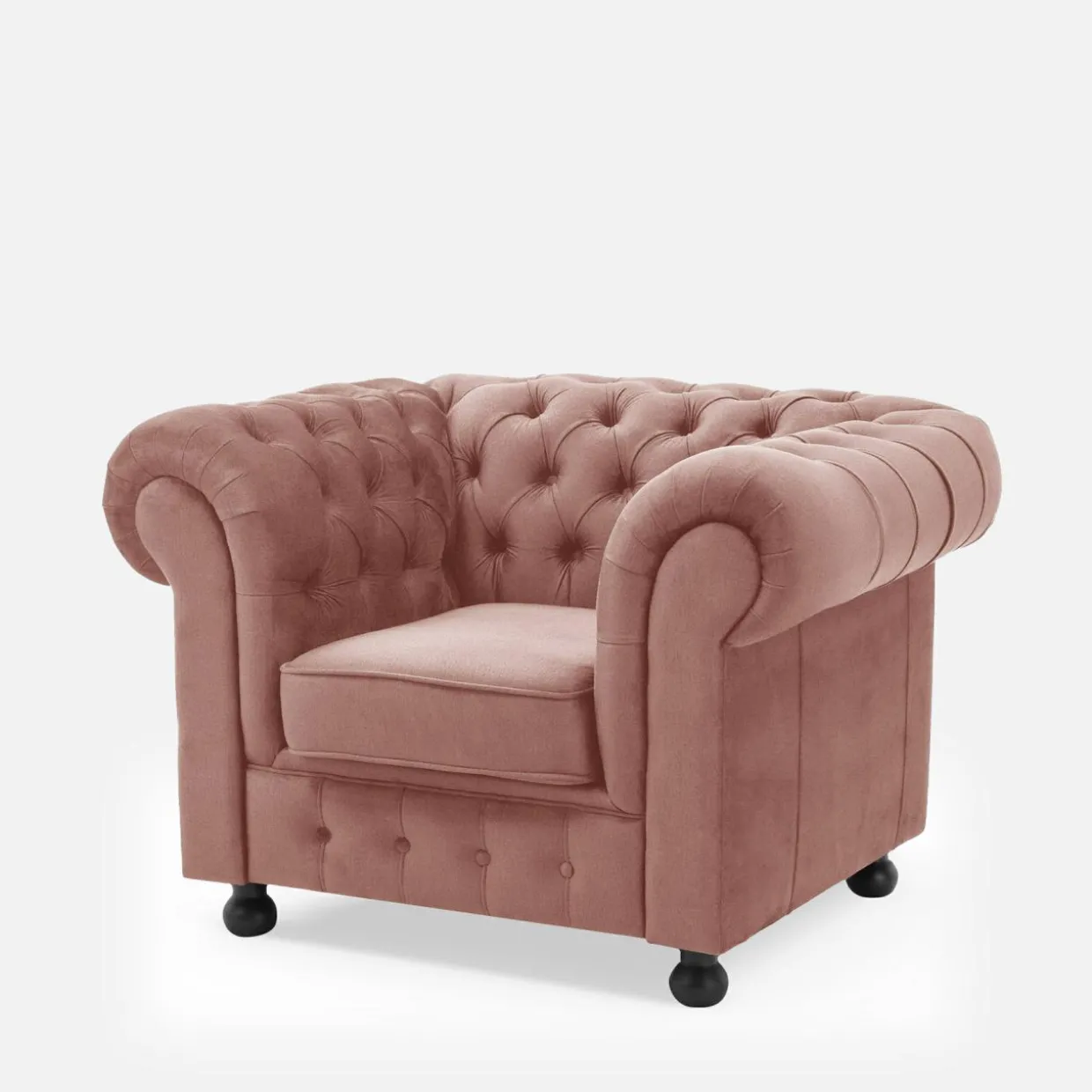 - Wewnętrzną część oparcia i wywiniętych na zewnątrz podłokietników pokryto pikowaniem oraz ozdobnymi guzikami w kolorze tapicerki.