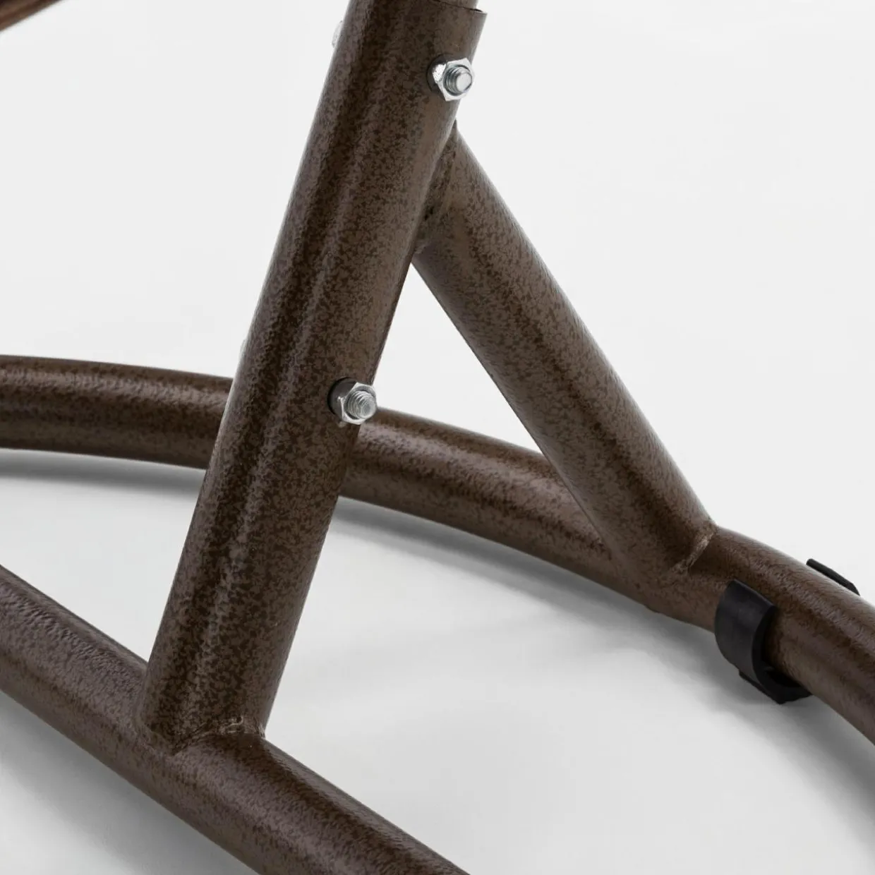 - Brązowy kolor stelaża, siedziska i tapicerowanych poduch koresponduje z naturalnymi barwami ogrodu.