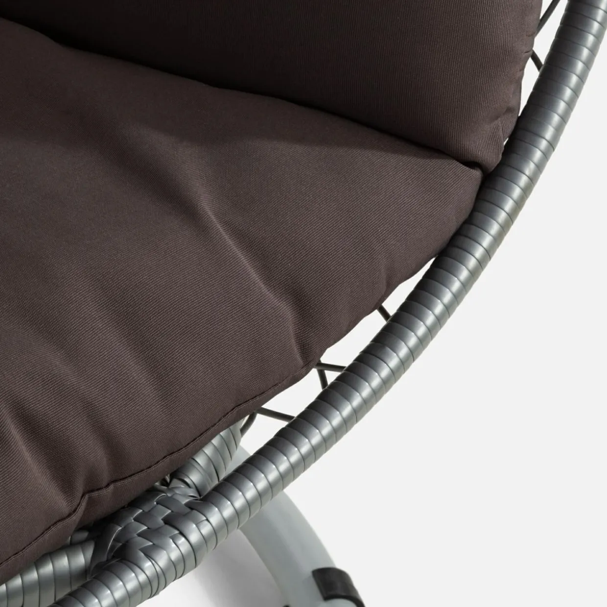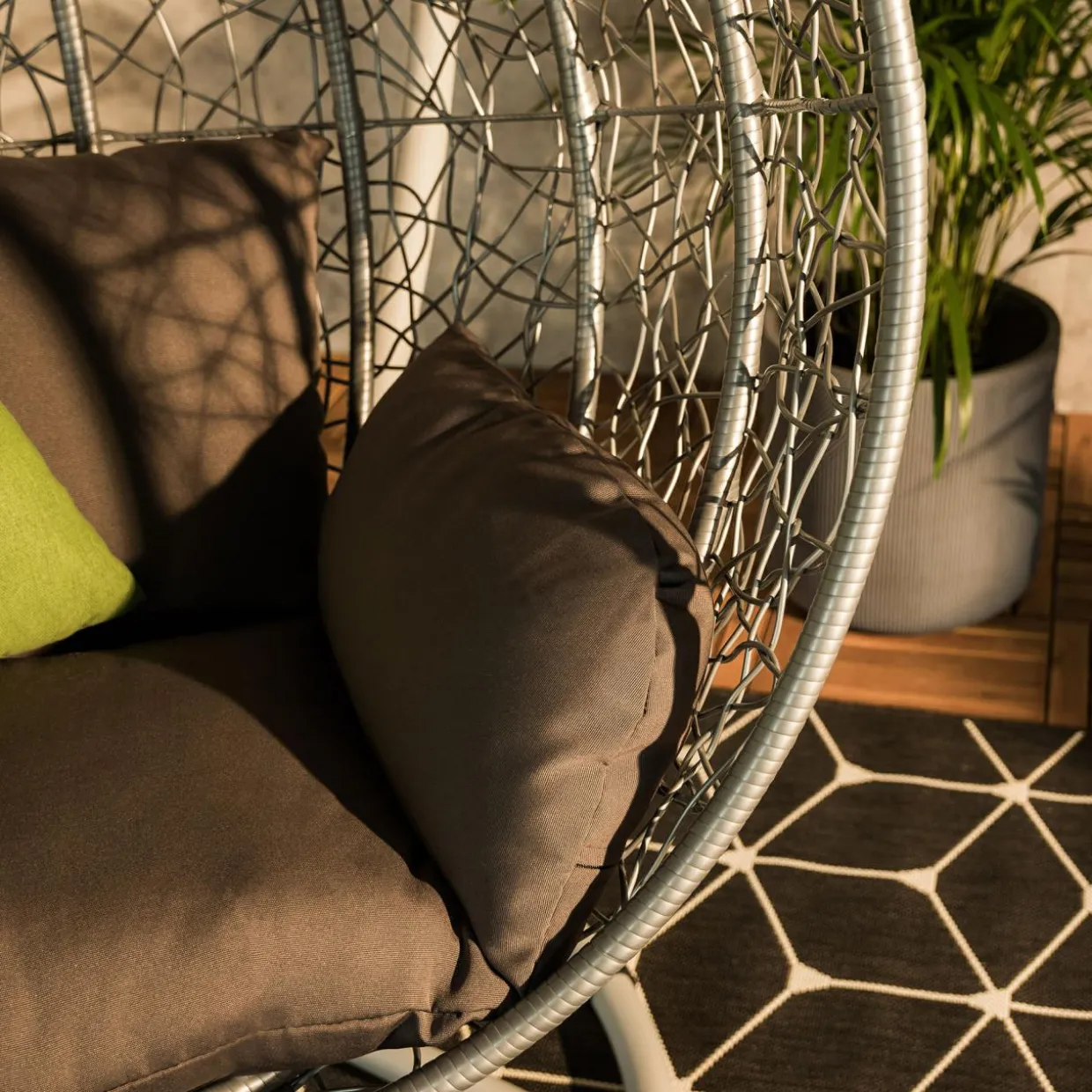 Owalny kształt siedziska – przypominający kultowe fotele „jajo” – zapewnia poczucie intymności i przyjemnego otulenia.