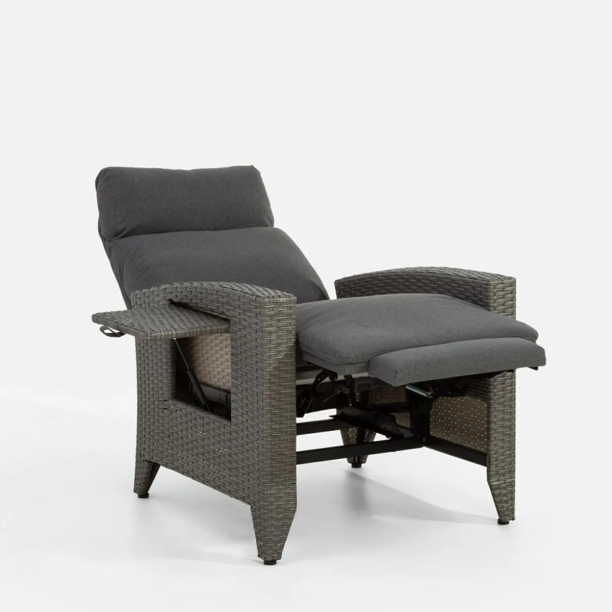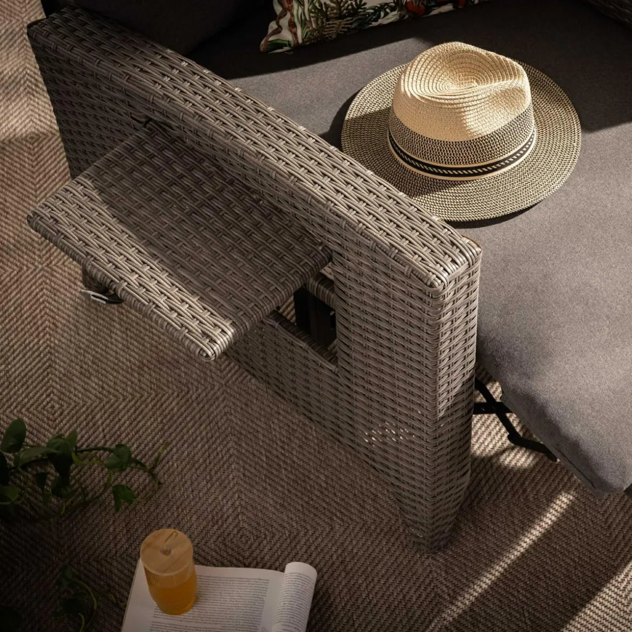 Fotel ogrodowy SOTTO z boku podłokietnika posiada wbudowany blat. Twój napój będzie zawsze blisko, bez zbędnego sięgania do stolika kawowego.