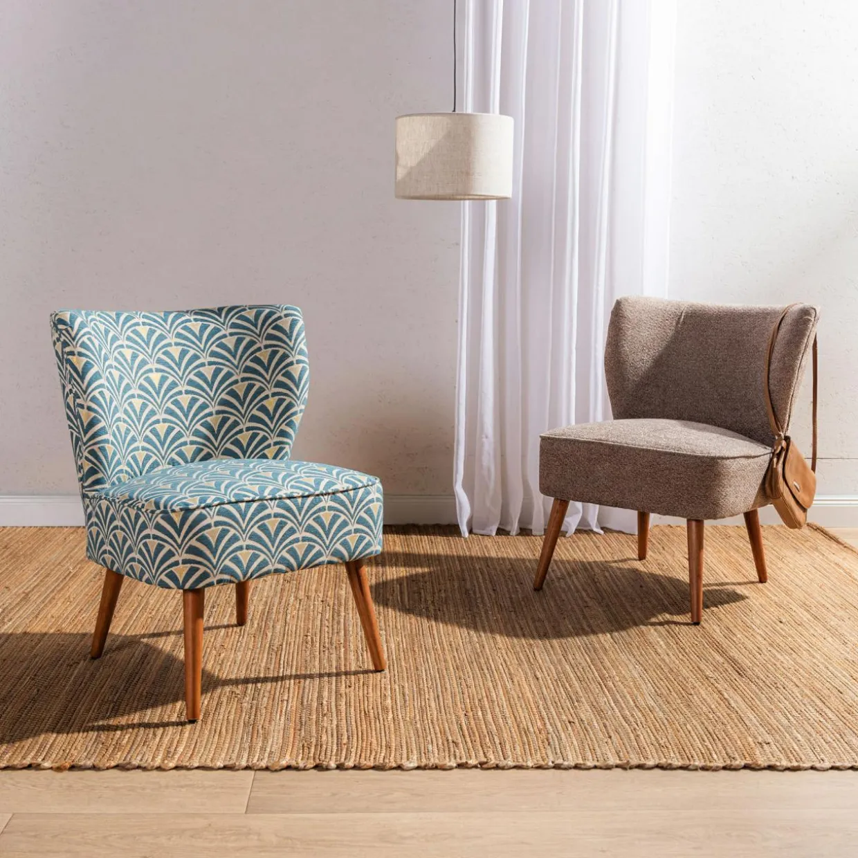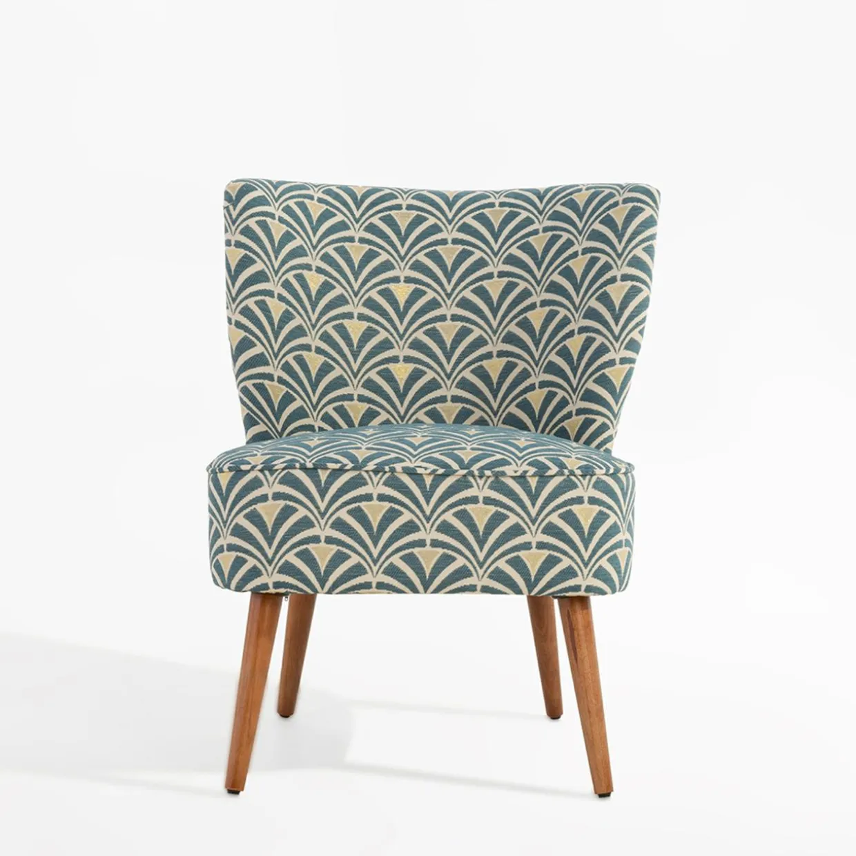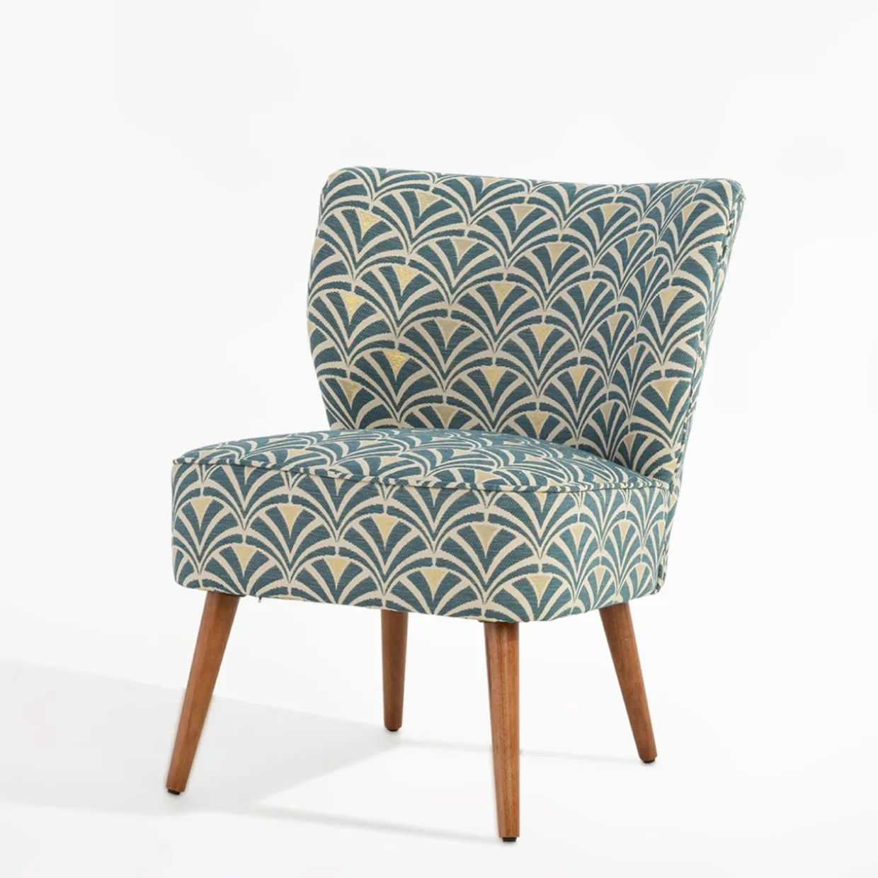 - Połączenie żakardowej tkaniny i ciemnego drewna będzie ciekawym akcentem we wnętrzu urządzonym w stylu retro.