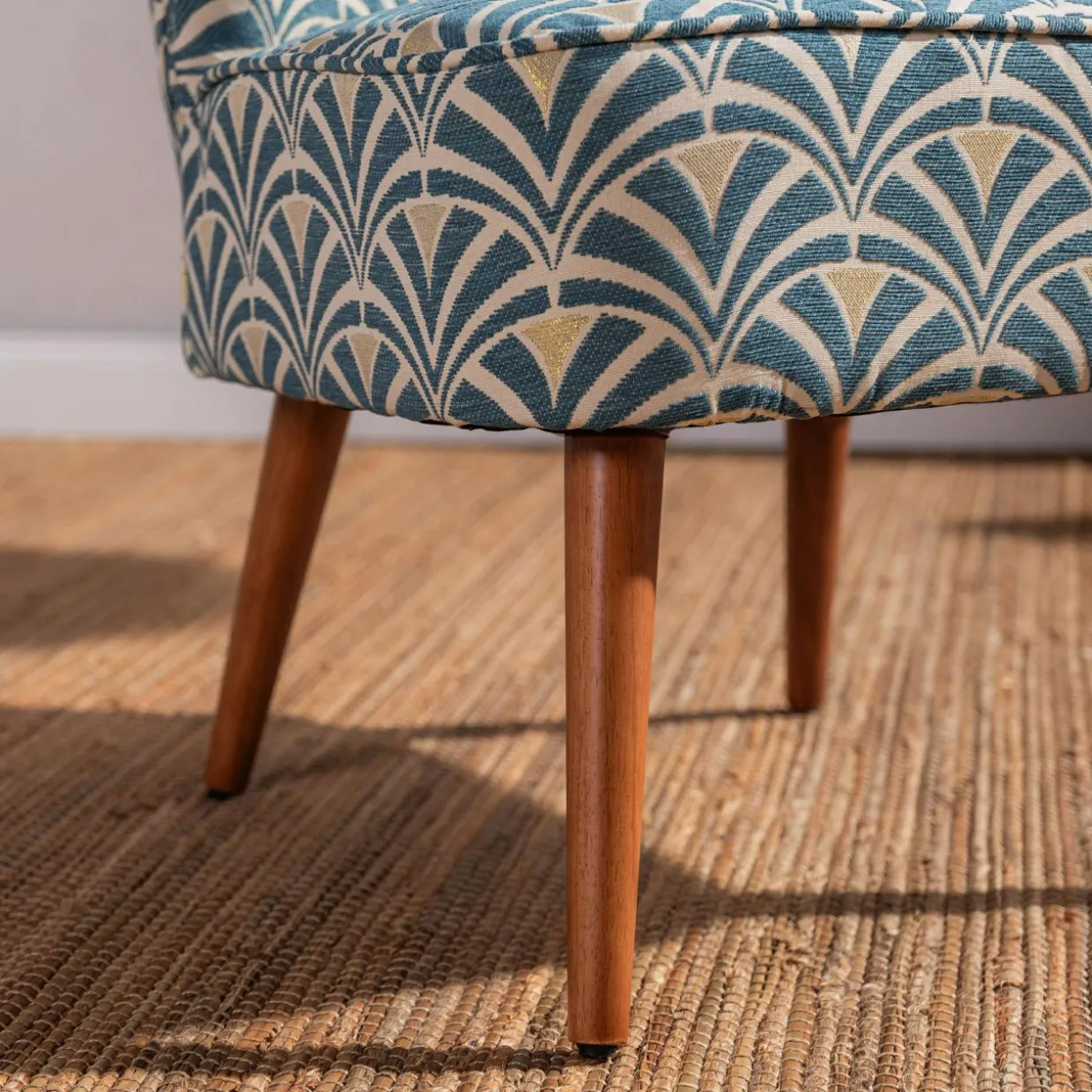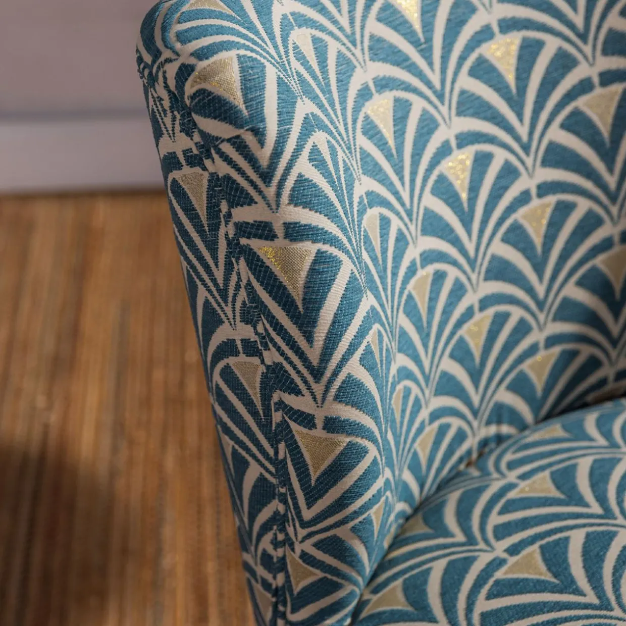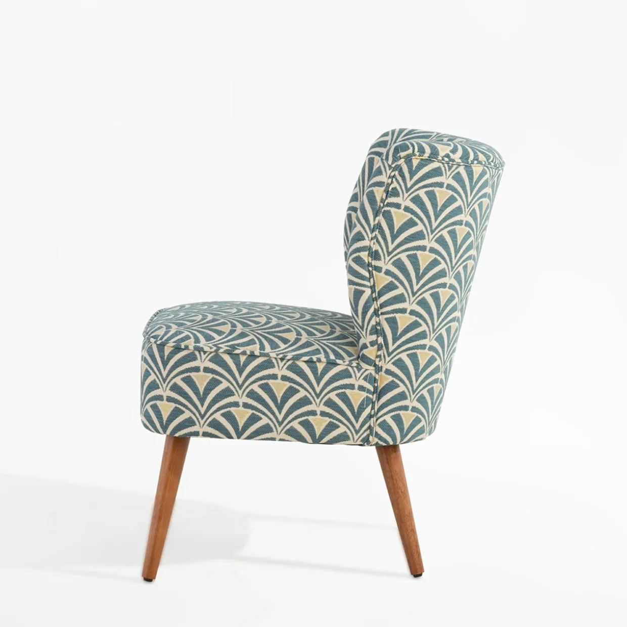 - Połączenie żakardowej tkaniny i ciemnego drewna będzie ciekawym akcentem we wnętrzu urządzonym w stylu retro.