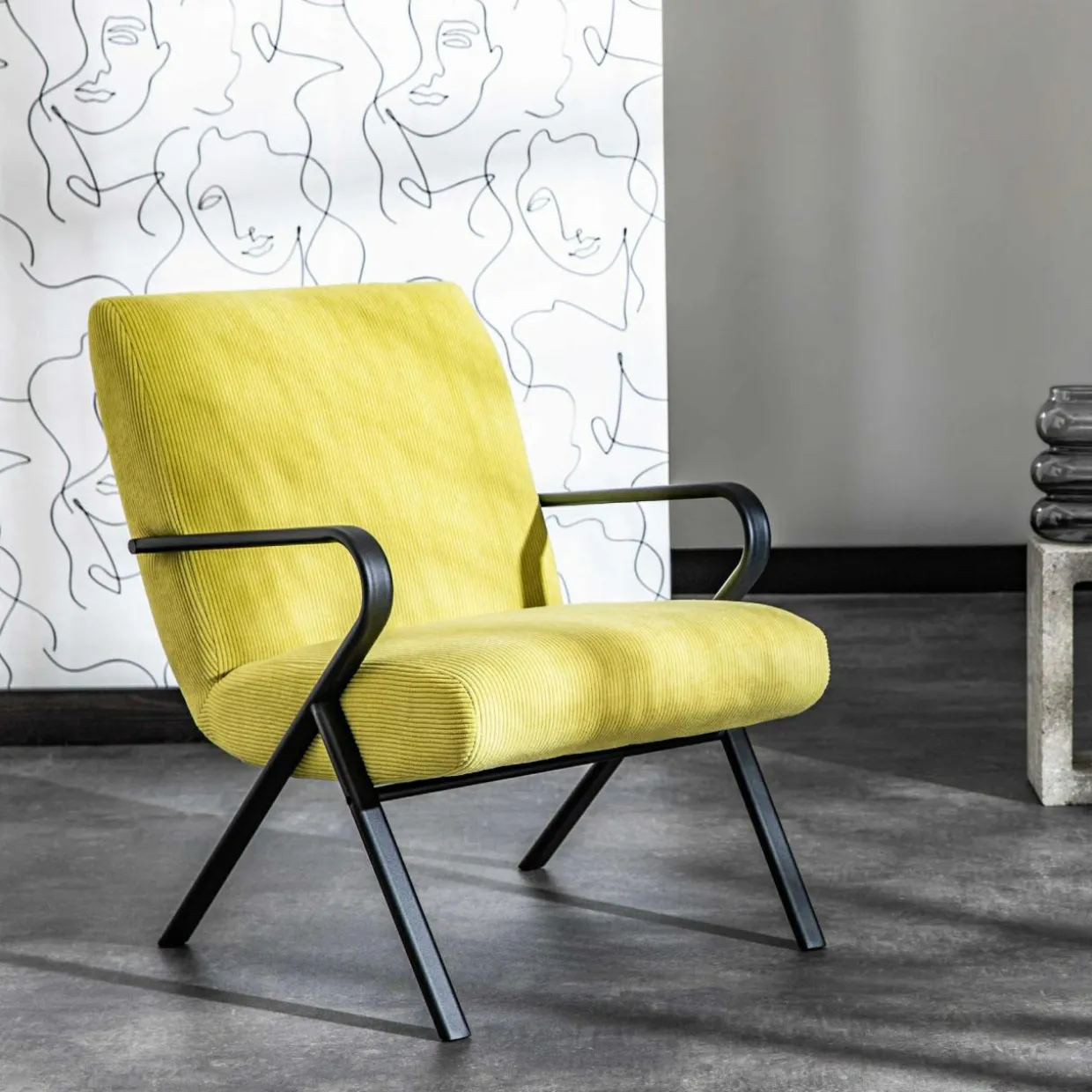 Lubisz oldschoolowy design? Fotel CAPENBAR powstał z myślą o wnętrzach urządzonych w stylu retro. Przykuje Twój wzrok musztardowym kolorem i podstawą w geometrycznym kształcie.