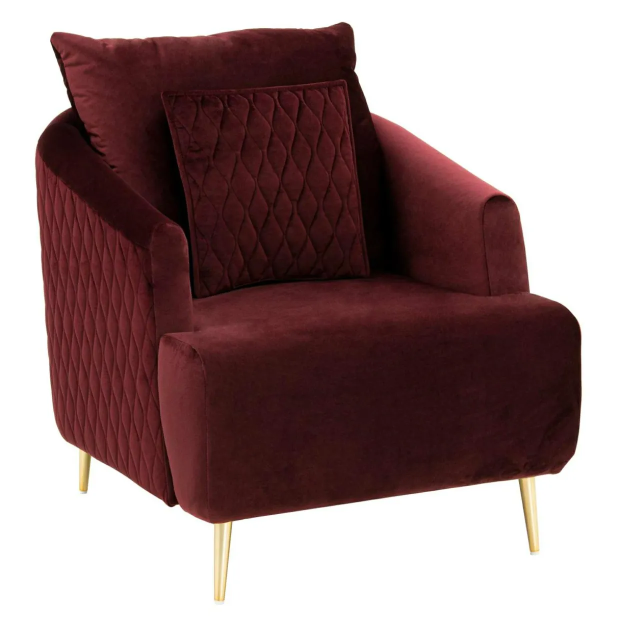 - Fotel wykończono przyjemną w dotyku, miękką tkaniną MAGIC VELVET o bordowym odcieniu.