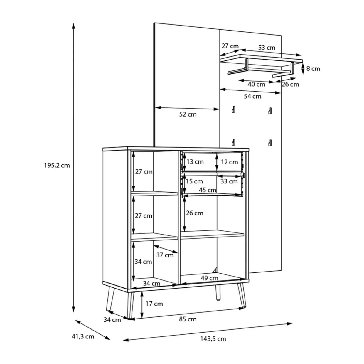 - Garderoba posiada drążek na wieszaki oraz 4 haczyki. Powieś na nich kurtki i płaszcze.